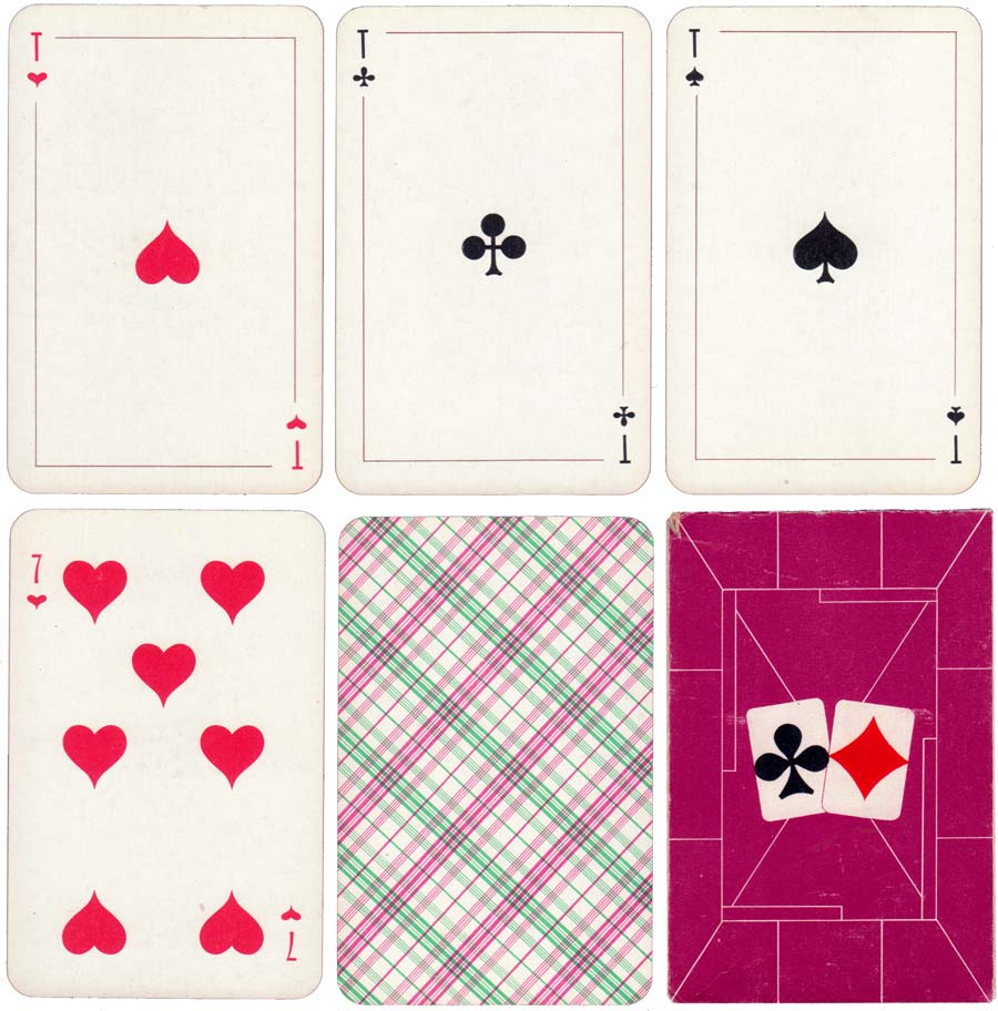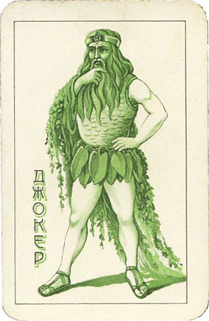 Playing cards showing the influence of ‘Jugendstil’ first manufactured by the Soviet Playing Card Monopoly (U.S.S.R.) in 1911 and then again in c.1930. The well-designed court figures are colour coordinated, and represent characters taken from literary works, pantomimes and comedy (Queen of Diamonds as Scheherazade, Queen of Clubs as a mermaid, Knave of Hearts as Pierrot). Some editions are known with English indices suggesting that the cards were also intended for export.