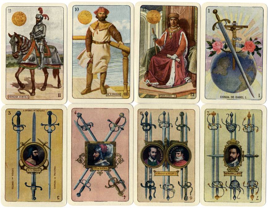 “Baraja Histórica” (Descubridores y Colonizadores de America) manufactured by Heraclio Fournier S.A....