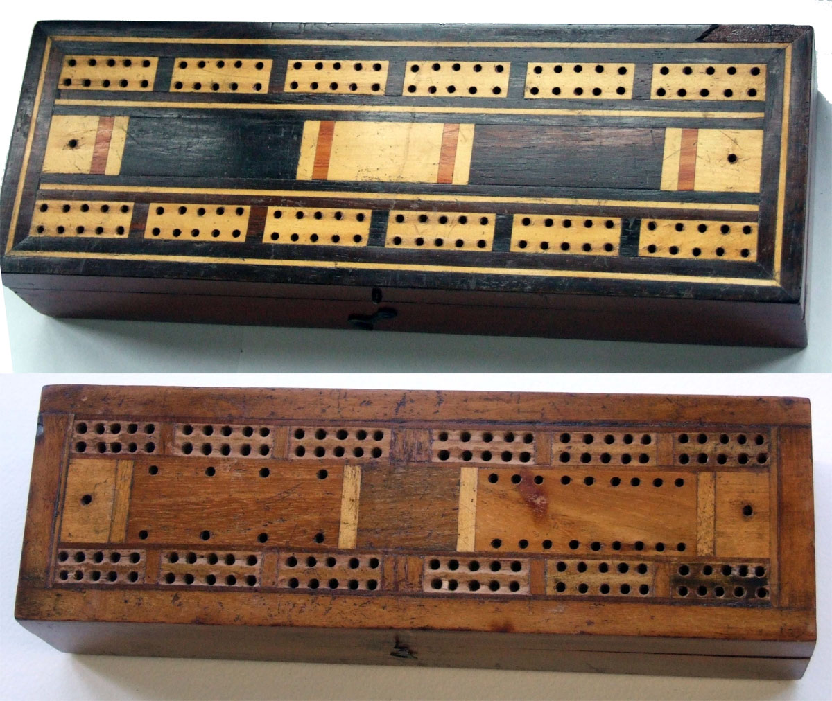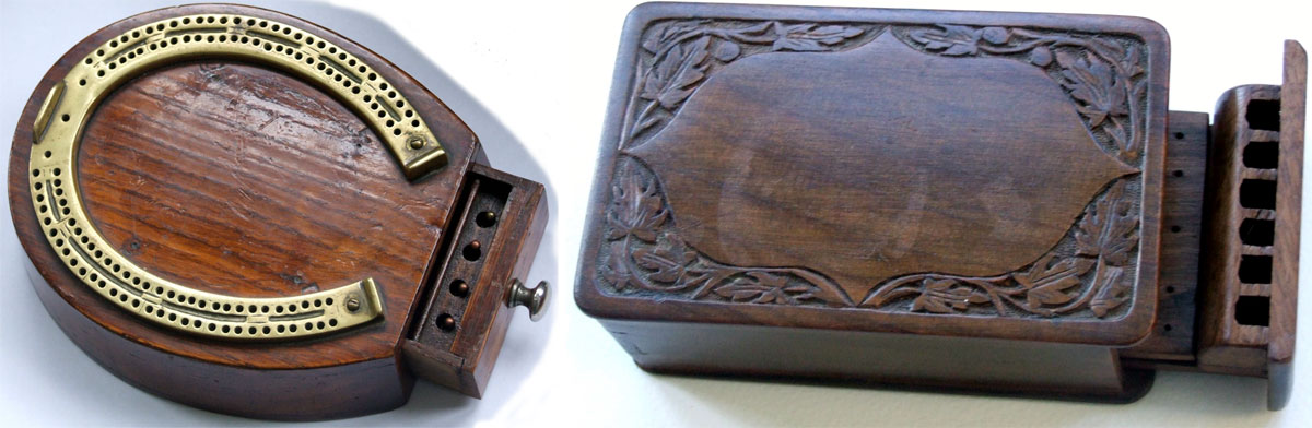 Above: single and double box cribbage boards. From the collection of Tony Hall.