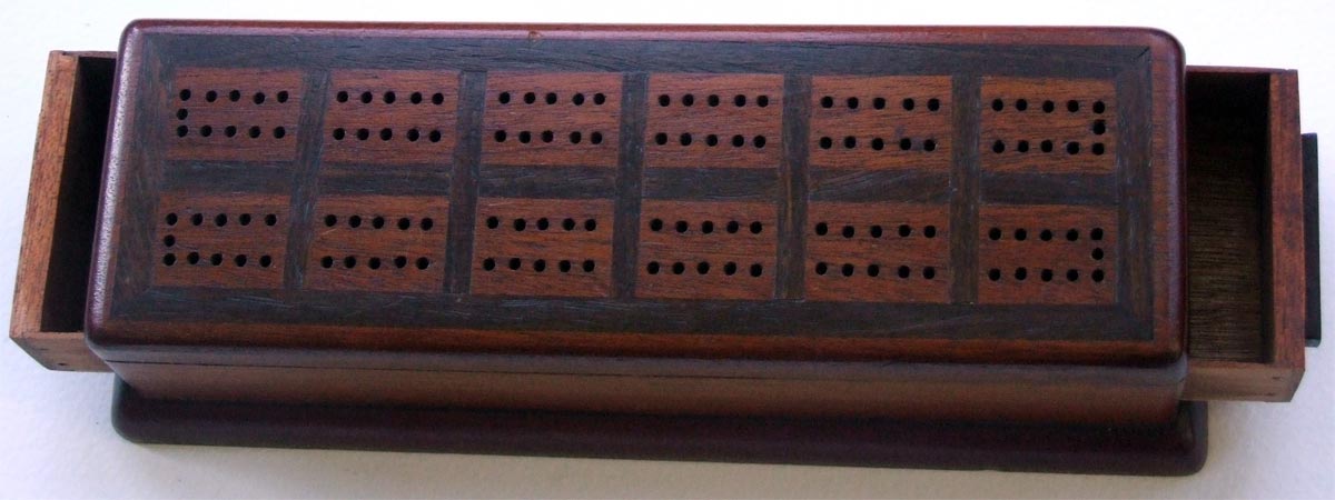 Above: cribbage box with a card drawer at each end. From the collection of Tony Hall.