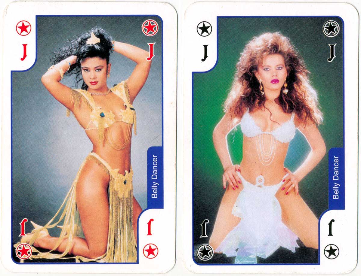 Souvenir of Turkey pack of cards published by KS Games, which the box describes as “Special of the Turkey”. Each card has a different photo relating to Turkey, including epic historic and religious sites, lyrical landscapes and belly dancers on the jokers. Curiously, the courts have German indices for the Jack, Queen and King, although the inscriptions and box are in English. The back design shows a collage featuring wrestlers, Whirling Dervishes and an ancient temple against a mountain backdrop.