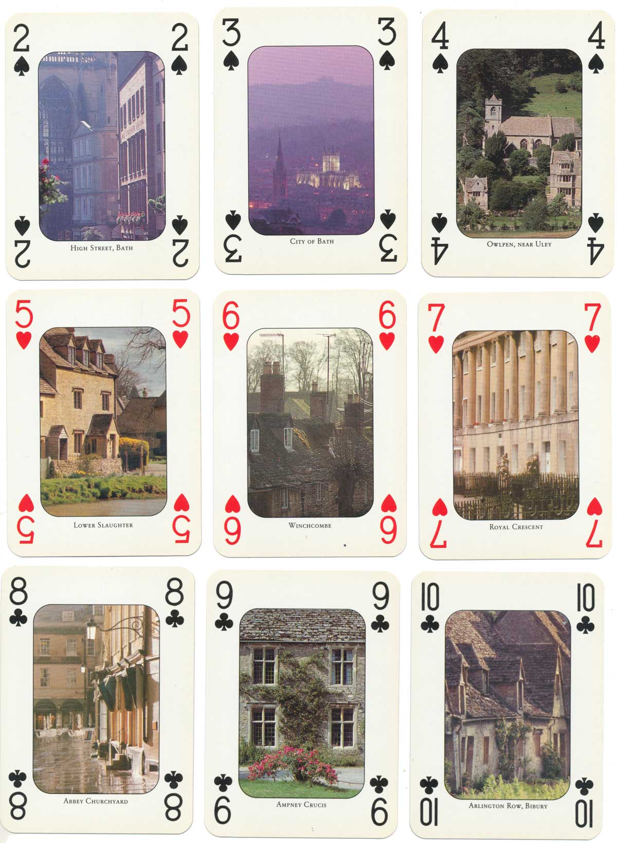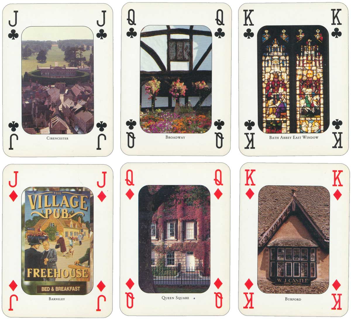 “Bath and the Cotswolds” souvenir playing cards featuring colour photographs by Colin Baxter on each card, designed by Charles Miller Graphics (Edinburgh) and published by John McLean of Edinburgh, c.1990. In time this pack may become sought after because it is well presented with good photography and tasteful images.