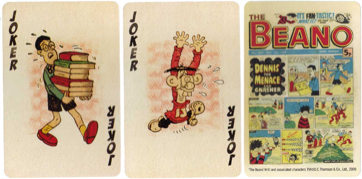 Above: Beano playing cards published by Wild & Wolf, 20 Manvers St, Bath, BA1 1JW. Made in Taiwan, 2009.