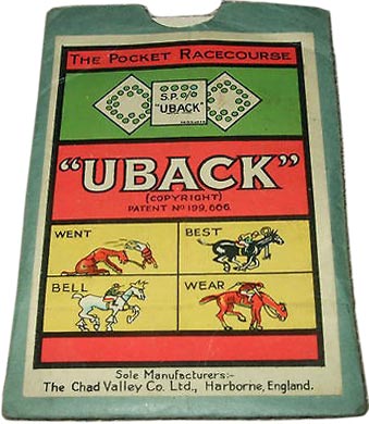 Above: Uback horse racing game patent specification, Chad Valley Co Ltd, 1922.
