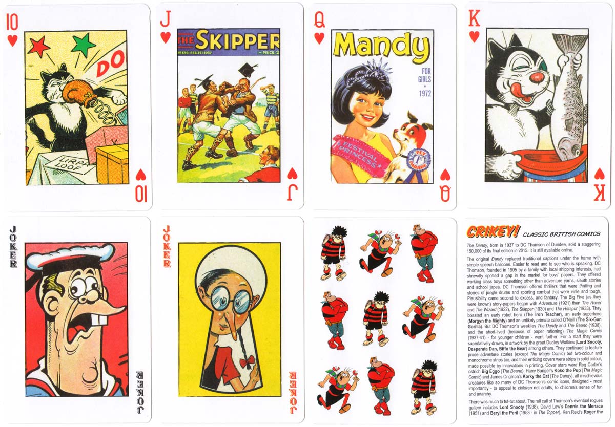 Crikey! Classic British Comics playing cards published by Bird Playing Cards, 2013.