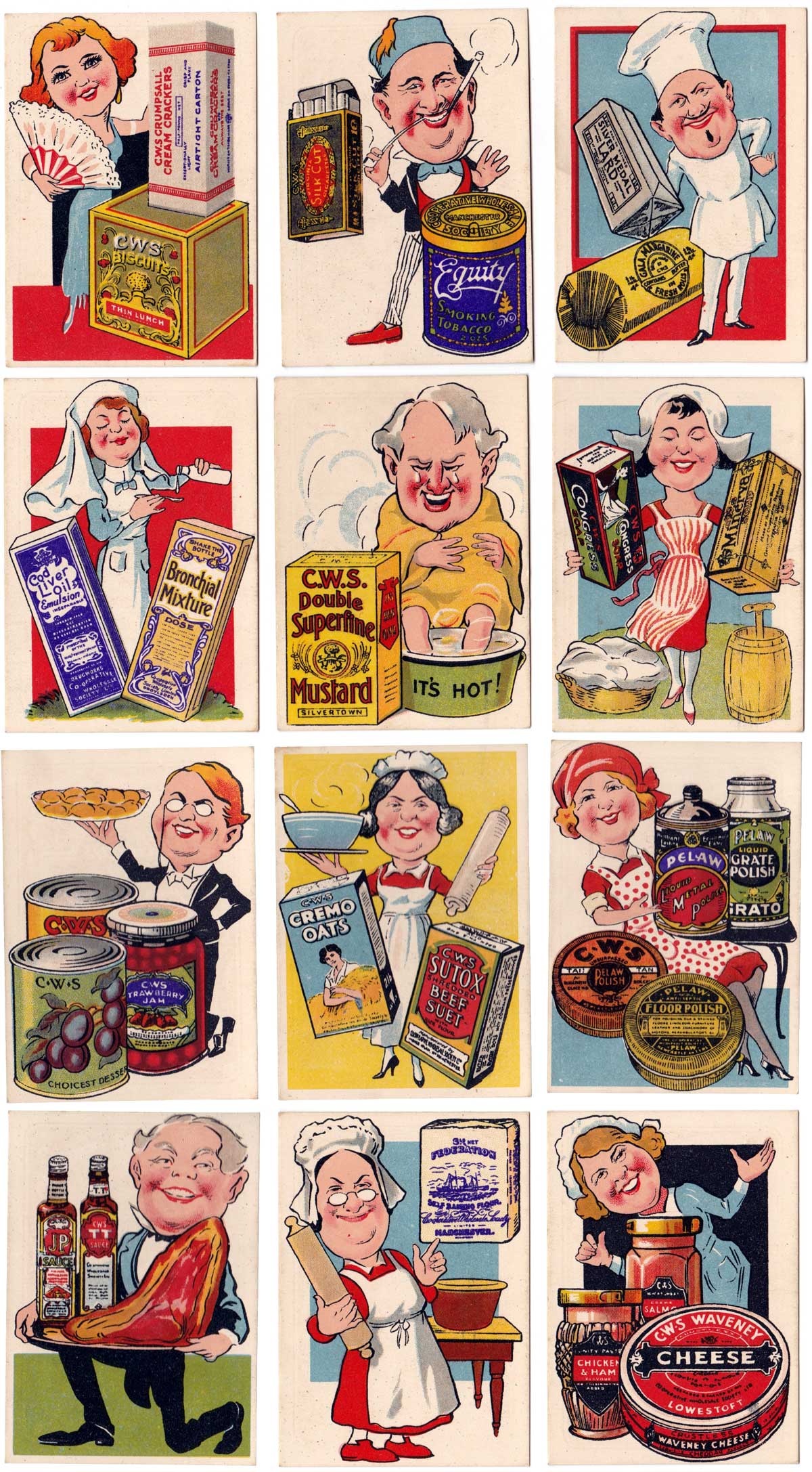 The Co-operative Wholesale Society ‘Game of Snap’ features vintage artwork promoting household products of the day, such as cod liver oil and floor polish, manufactured by the C.W.S. Printing Works, Manchester (UK), c.1930s. At least six different C.W.S. Snap games were published during the 1930s and this is probably one of the best. The back design includes the C.W.S. wheatsheaf motif.