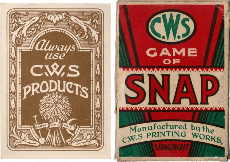 Above: another “Game of Snap” manufactured by C.W.S. Printing Works, Manchester during the 1930s. The reverse features the wheatsheaf motif with the legend "Labor and Wait".