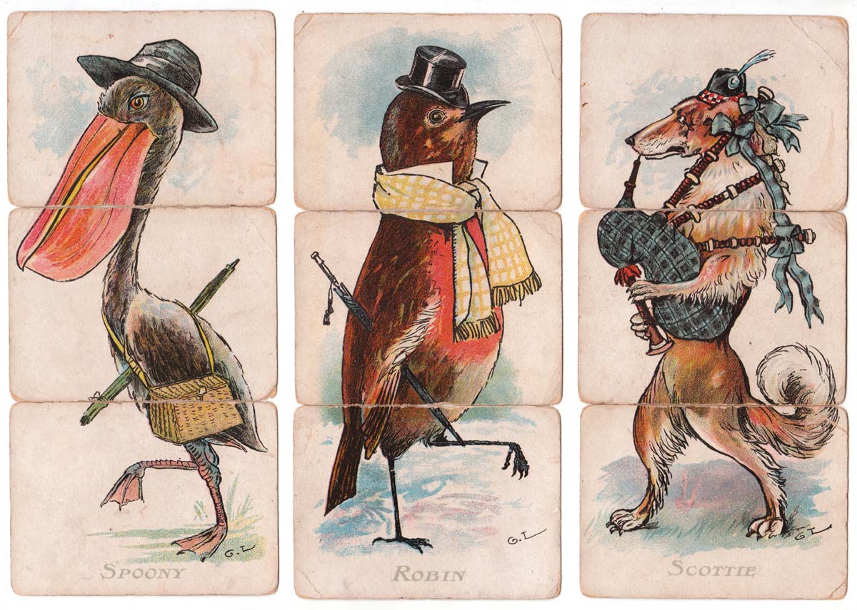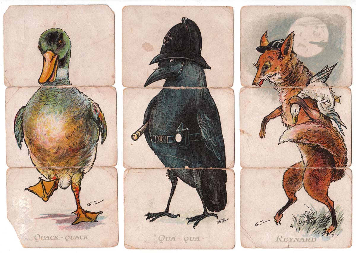 Above: Animal Misfitz designed by George Lambert.for Faulkner Games, c.1900. There are 72 cards arranged in 24 sets of three; each set being the head, middle and feet of a named figure.