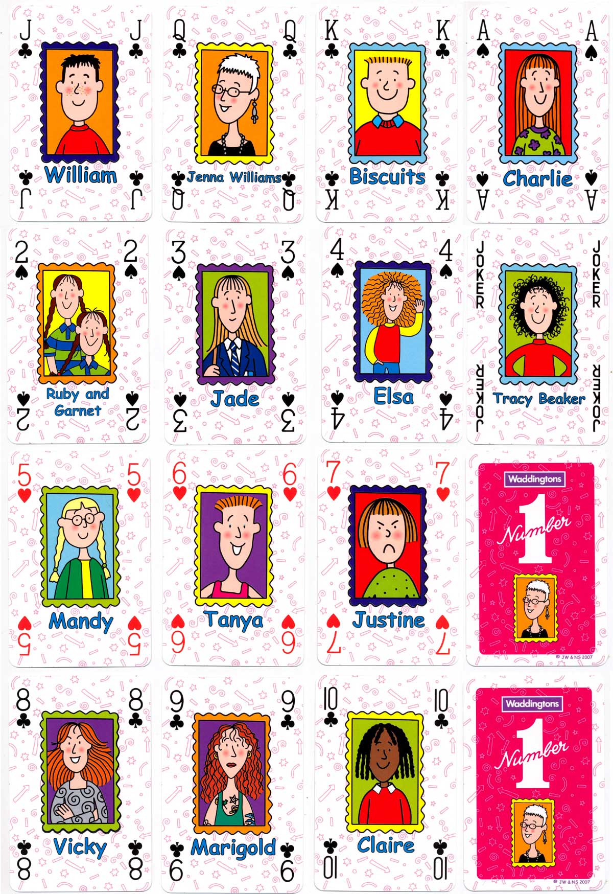 “Jacqueline Wilson” playing cards were illustrated by Nick Sharratt and published by Winning Moves UK Ltd in 2007.