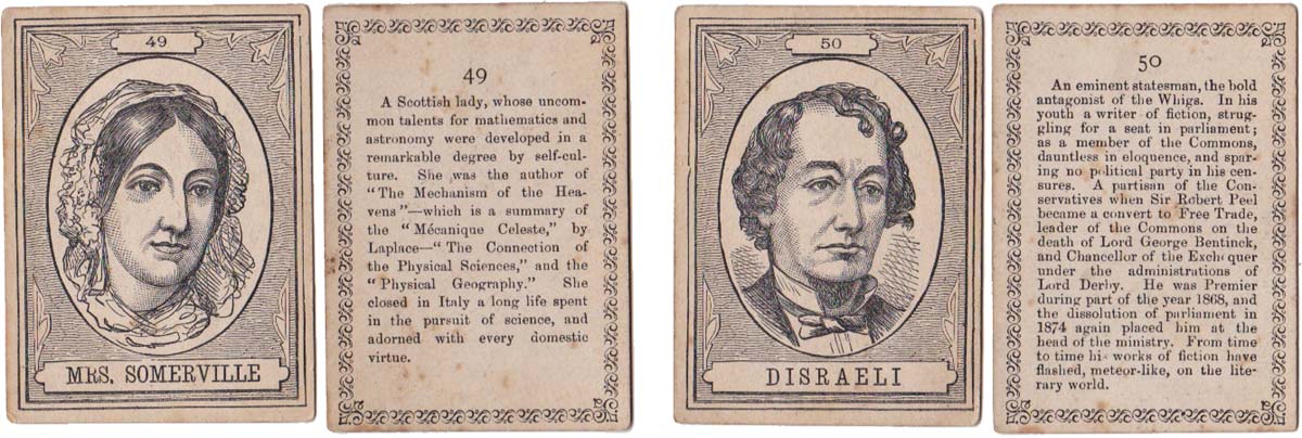 Above: cards from The XIXth Century game published by John Jaques & Son, c.1875. 100 cards in box. Cards size: 5.3 x 7.5 cm. Click on images to zoom.
