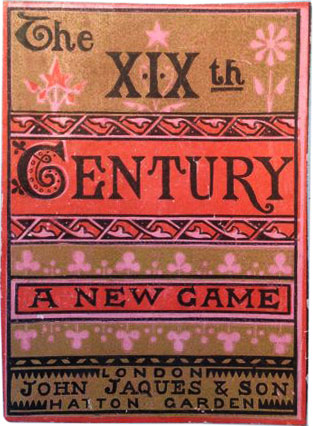 The XIXth Century card game published by John Jaques & Son, c.1875. This is the fourth in a series of educational games covering the XVI, XVII, XVIII & XIX centuries published by Jaques & Son during the 1870s. This set contains portraits of 50 celebrated characters of the 19th century - composers, statesmen, poets, monarchs, explorers, artists, soldiers, novelists, engineers and geniuses from around the world, along with short biographies and historical events.