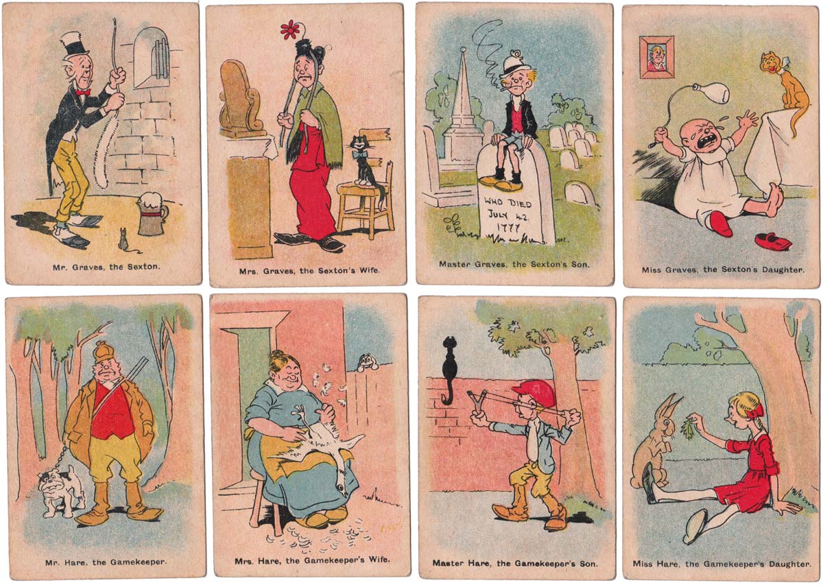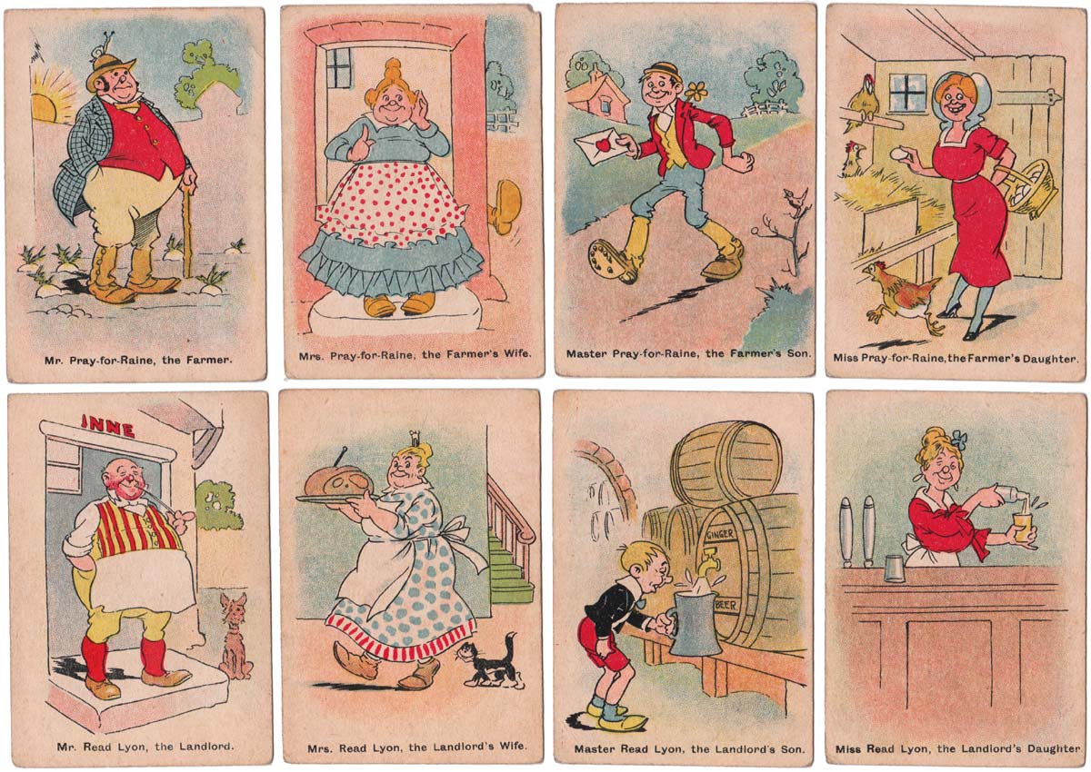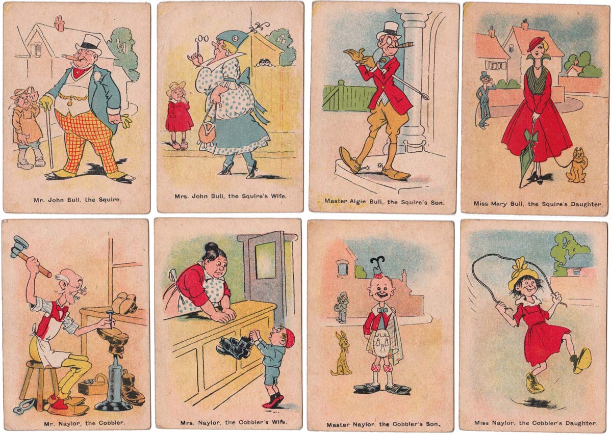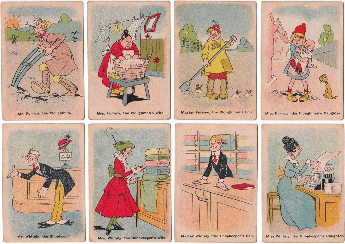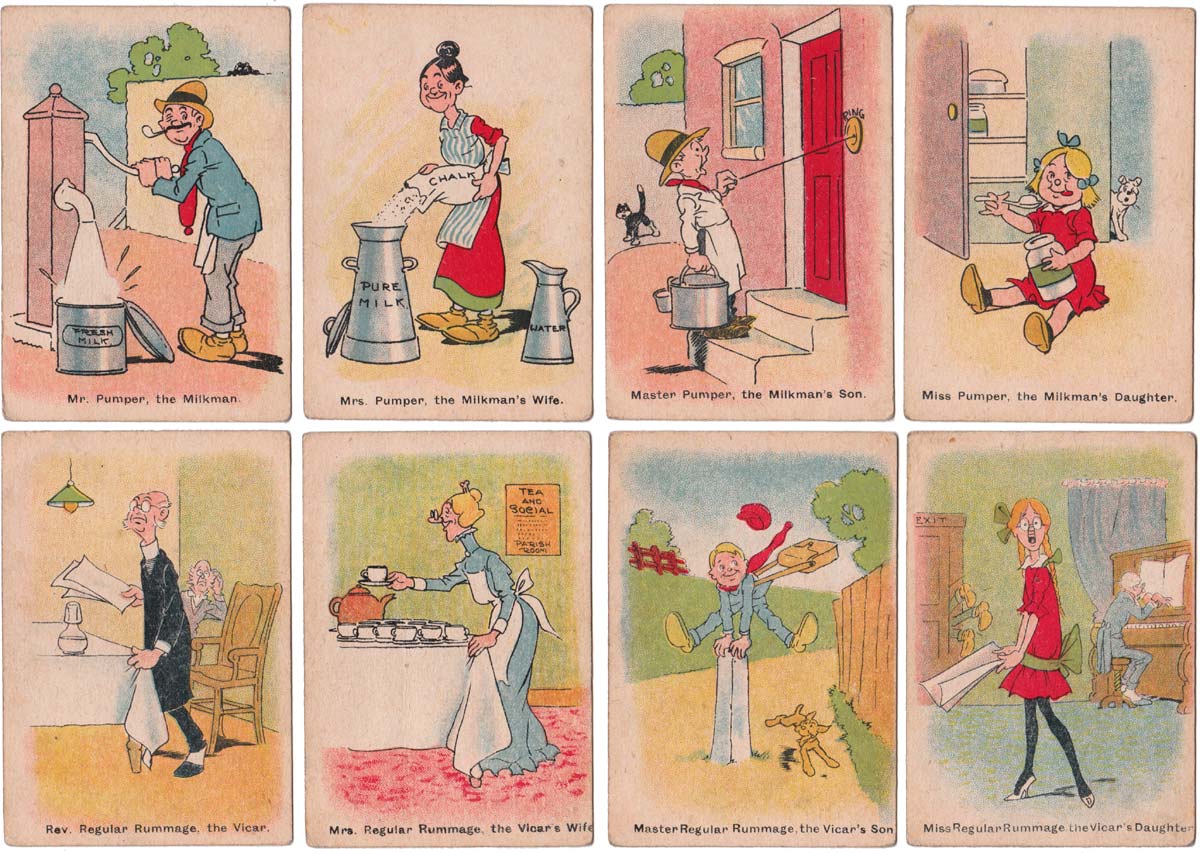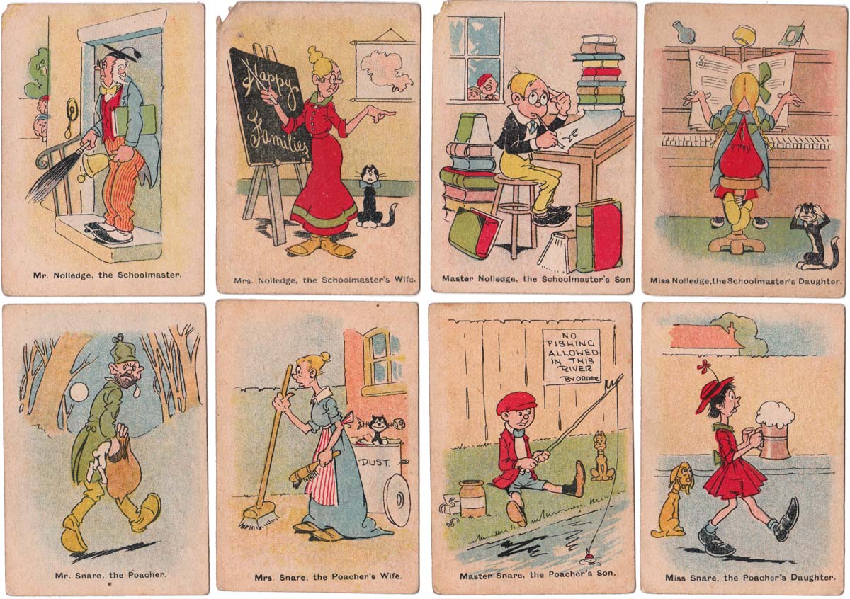 Happy Families published by Norvic Mill, c.1920s. Go back in time through the sight of these delightful comical sketches of the families of Farmers, Squires and Landlords through to Milkmen, Ploughmen and Cobblers.