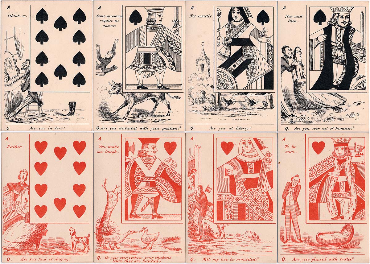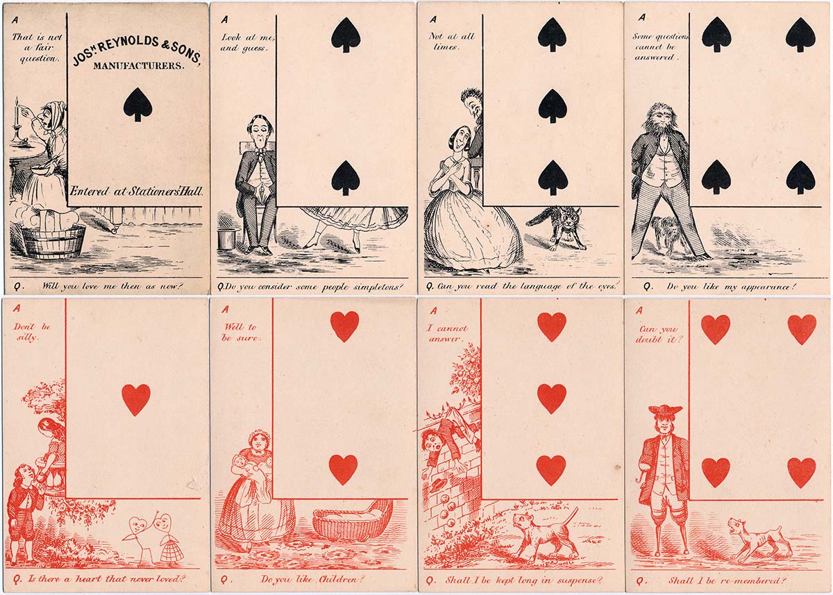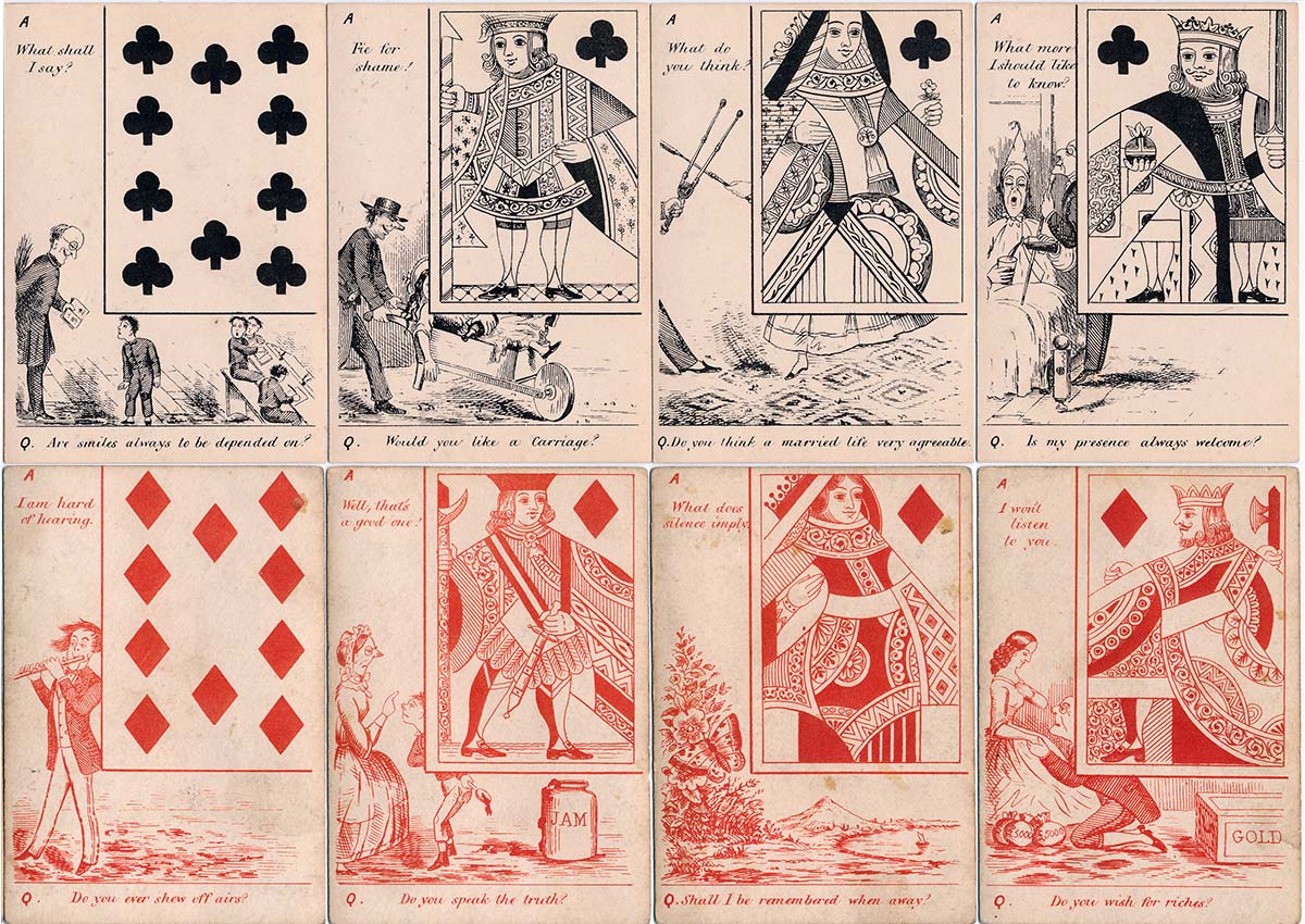 Above: Comic Question & Answer cards by Josh. Reynolds & Sons, circa 1850. 52 cards, plain backs. From the collection of Barney Townshend.
