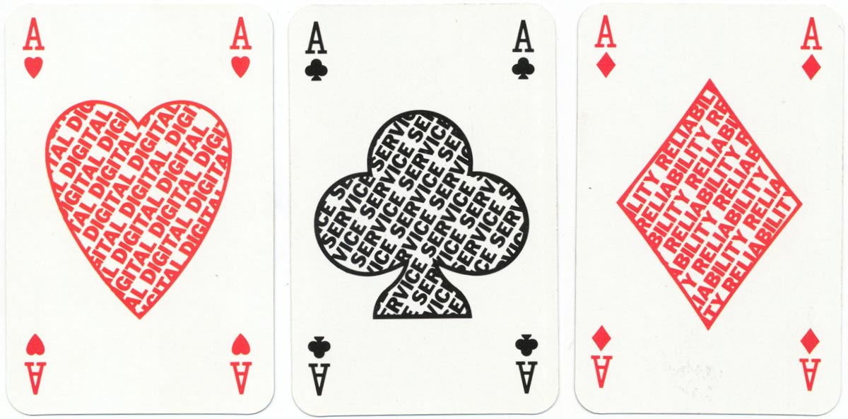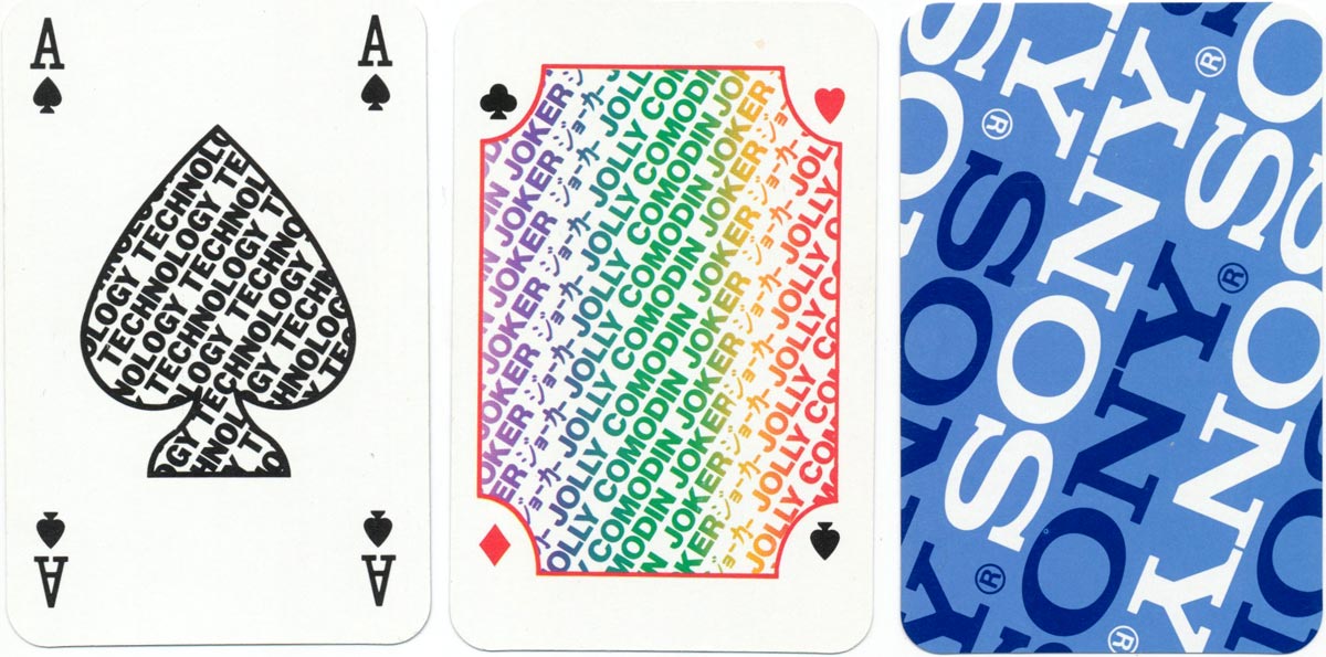 Above: Sony IBC’86 complimentary pack. The four aces are stylised with a repeated single word. Images courtesy Matt Probert.