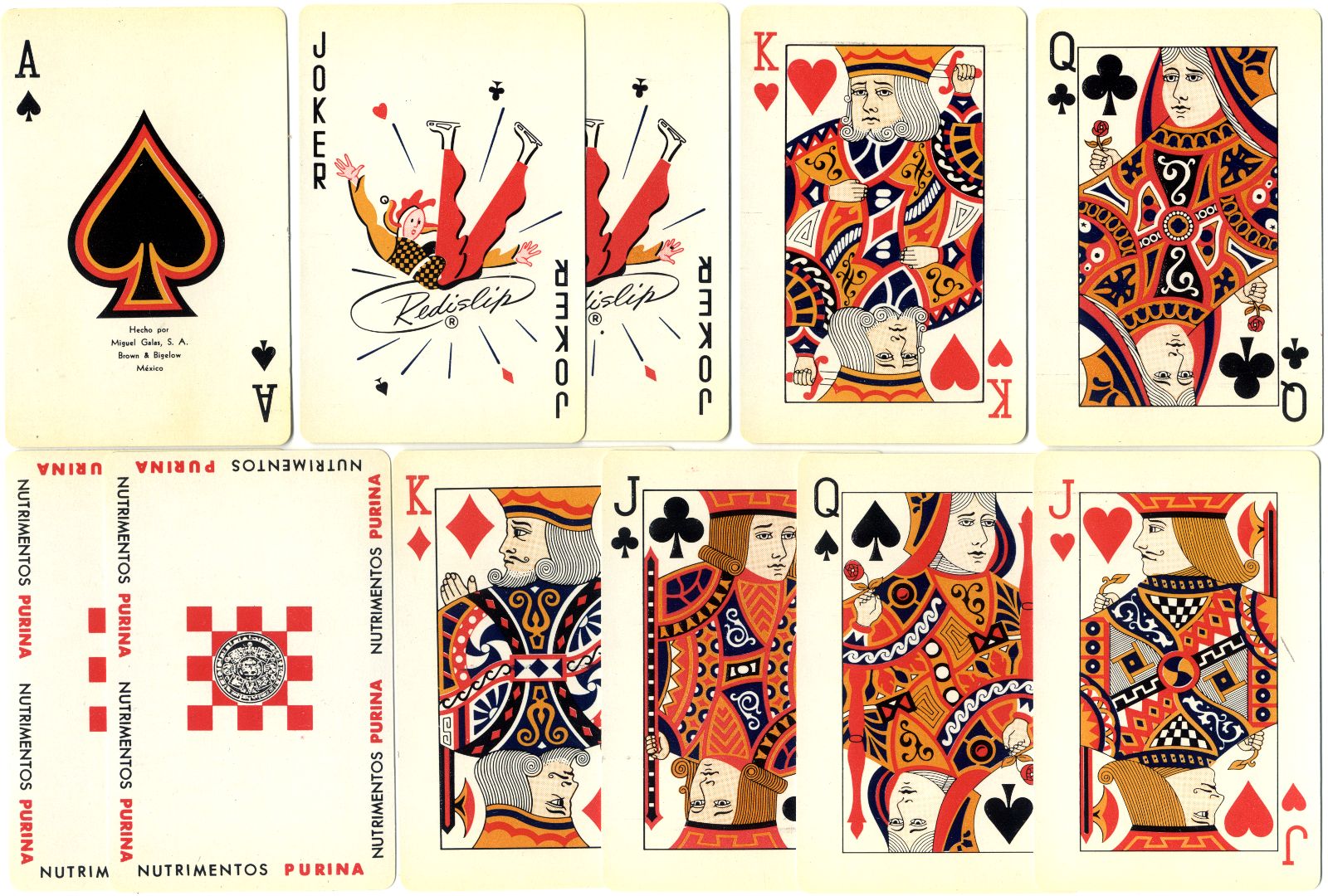 Nutrimientos Purina (Purina pet foods) advertising playing cards produced by Miguel Galas S.A. (Brown & Bigelow), Mexico, c.1960.