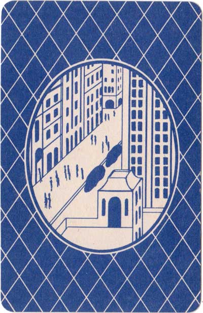Game of Cities card game was published by E. E. Fairchild Corporation, NY, under their ‘All-Fair’ brand name, in 1932. Seventeen North American cities are represented in sets of three cards each, with the addition of a fictitious city called Taboo, making a total of 54 cards with brief histories of each city printed beneath the images. See the Rules►
