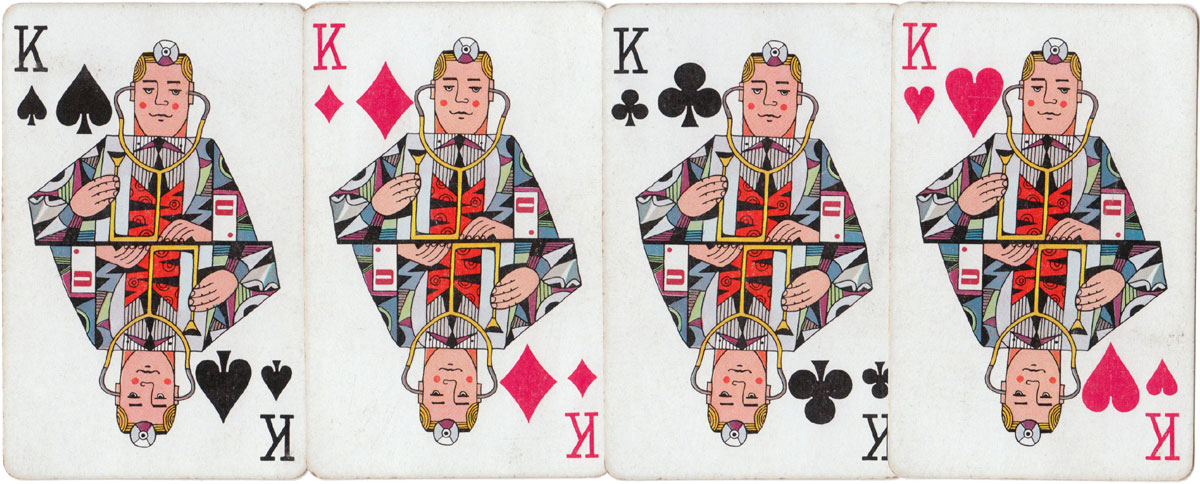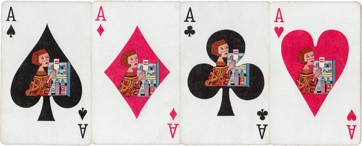 Humorous pharmaceutical deck made by Antoine van Genechten for Bayer, c.1963.
