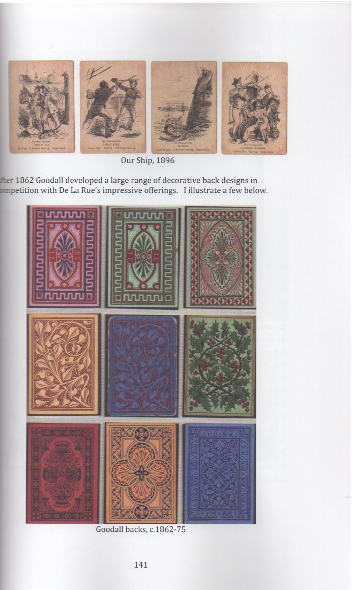 MY NEW BOOK ON OWEN JONES'S BACK DESIGNS IS AT THE PRINTER. I'VE TRACKED DOWN THE ORIGINAL SKETCHES HE MADE FOR DE LA RUE AND I RELATE THEM TO ACTUAL EXAMPLES OF CARD BACKS WITH DESIGN NUMBERS, STOCK NUMBERS AND DATES, WHERE KNOWN. BELOW ARE SAMPLE PAGES. THE DESIGNS ARE FULLY ILLUSTRATED THROUGHOUT. HIS DESIGN NUMBER IS PREFIXED WITH A D- AND STOCK NUMBERS HAVE NO PREFIX. PLEASE LET ME KNOW IF YOU WOULD LIKE TO ORDER A COPY. 123 + v PAGES: THE COST IS £58 PLUS POSTAGE.