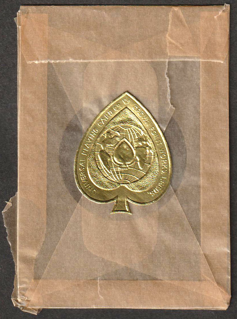 This is a good example of how important it is to have (and conserve) the wrapper with the manufacturer’s label on it. There is no other indication of the maker’s name either on the cards or on the box. Until a pack with this wrapper and label had been found, it was thought that this pack might have been printed by De La Rue.