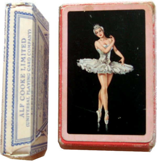Left: Pictorial Playing Cards manufactured by Alf Cooke Limited, unopened in their original tax wrapper c.1955-60.