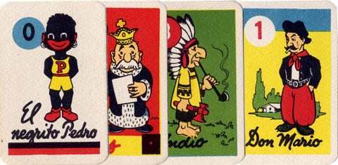 Right: cards from a 33-card children's game titled El Negrito Pedro, manufactured anonymously, c.1950s.