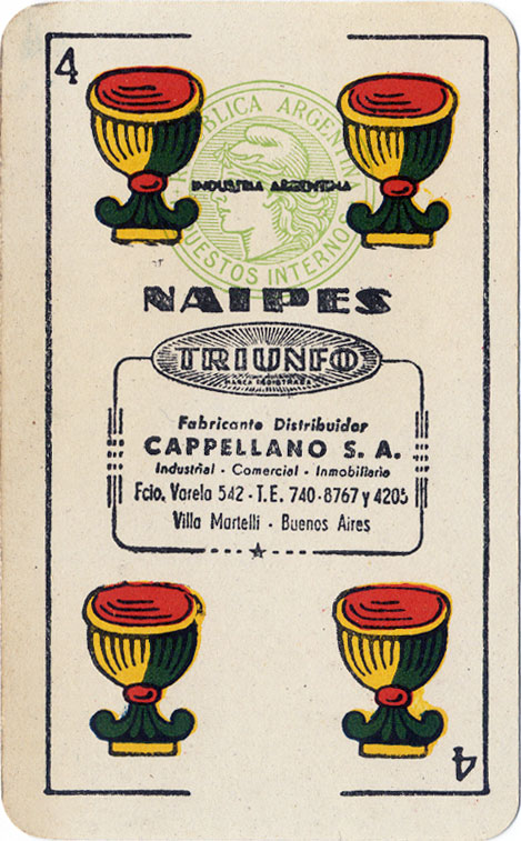 Naipes TRIUNFO Spanish-suited playing cards by Cappellano, S.A., Florencio Varela 542, Buenos Aires,...