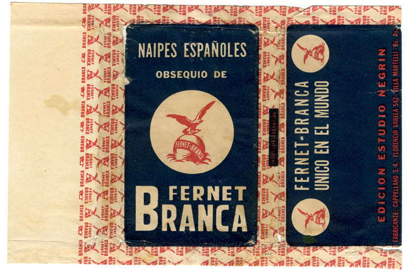 Spanish-suited playing cards for Fernet Branca by Cappellano, S.A., publishers and playing card manufacturers, Florencio Varela 542, Buenos Aires, Argentina, c.1955-60