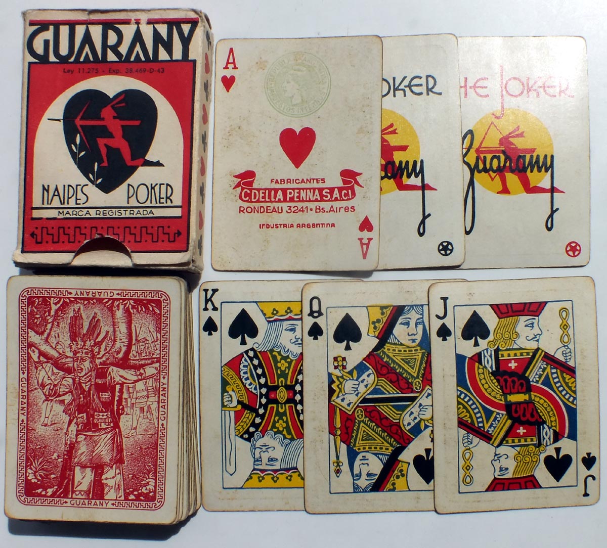 Naipes GUARANY by C. Della Penna S.A.C.I., Rondeau 3241, Bs Aires, c.1945-64.