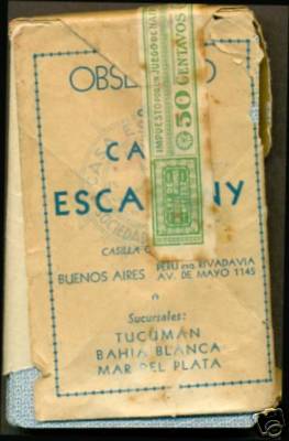 La Casa Escasany estuvo presente en las familias argentinas durante todo el siglo, al punto que sus productos podían encontrarse tanto en las casas de las familias más humildes como en las de las más adineradas. Característica de esta Empresa fue la alta calidad de su material promocional. Uno de esos elementos ha sido los mazos de naipes españoles donde las figuras tenían elementos alegóricos a los productos que comercializaba Casa Escasany.