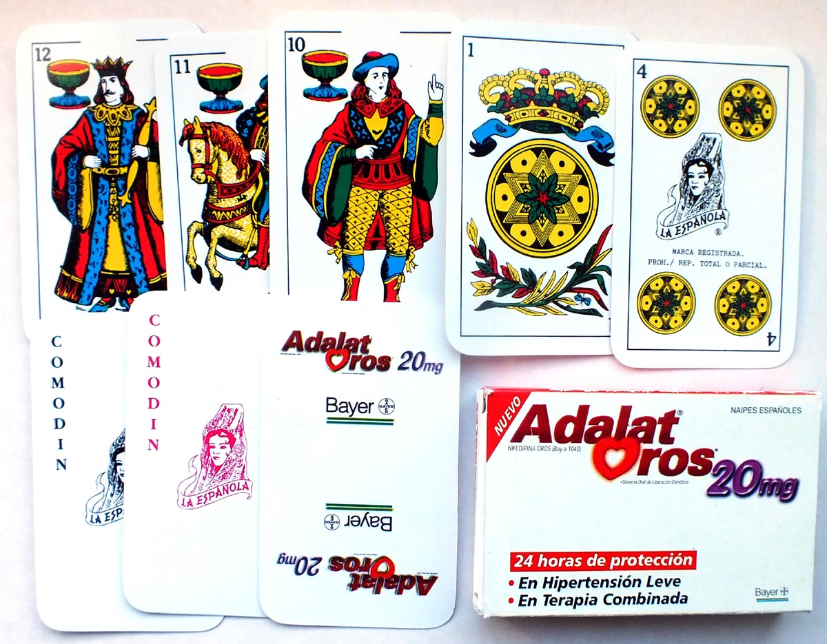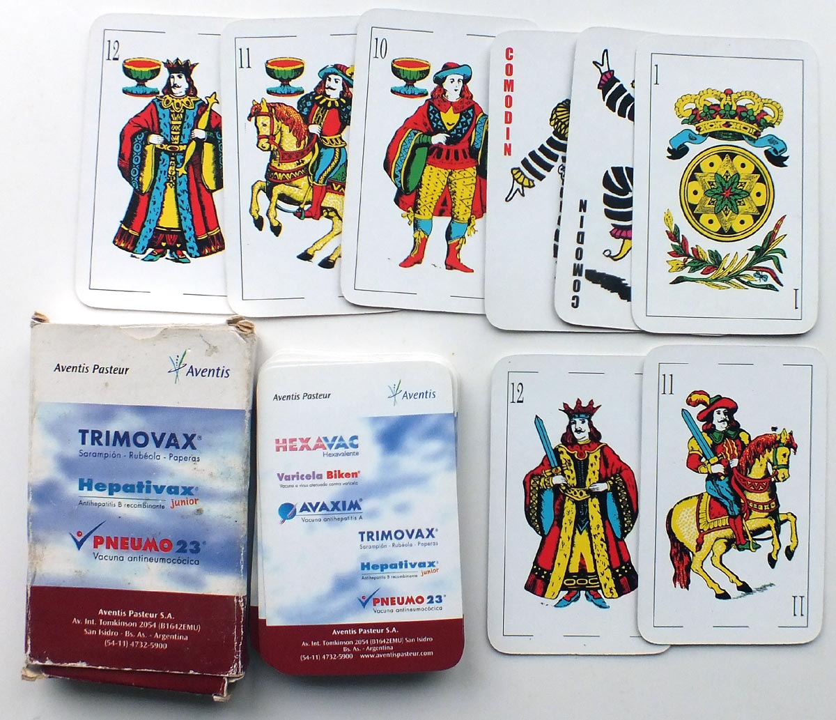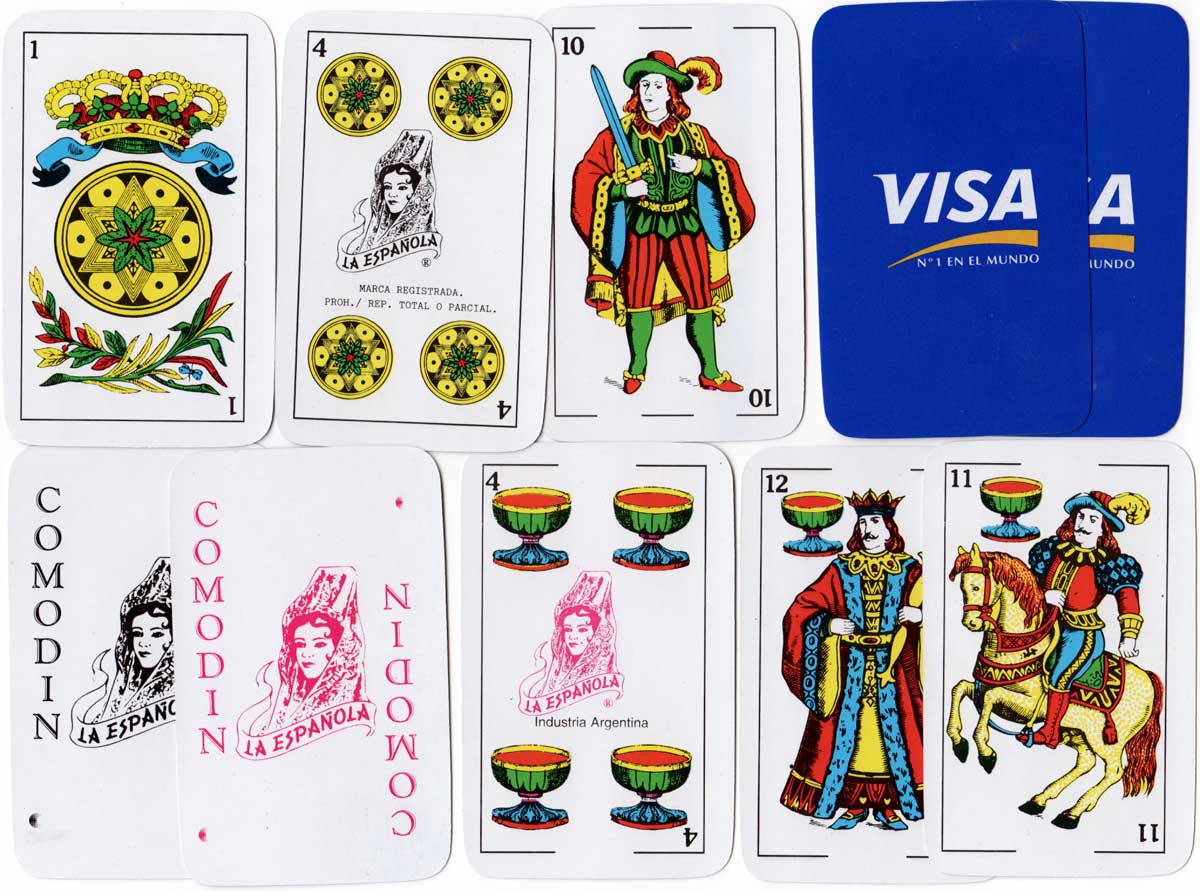 Above: La Española Classic playing cards, Gráfica 2001's traditional Spanish-suited pack. The original logo can be seen on the fours of cups and coins and the two jokers. See also: Bayer Adalat Oros, 1999 • Jockey Club Cigarettes • Chevrolet • Visa • Inter-Continental Hotel, Buenos Aires►