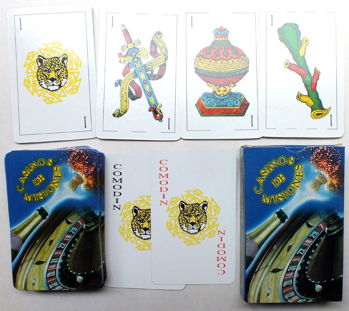 Above: advertising pack for Casinos de Misiones, based on "La Española 1946" designs with 2 special jokers and coin symbols substituted with with leopard heads.