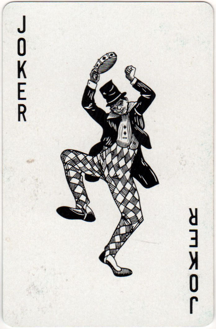 The Joker in the above budget grade decks - harlequin jester with a tambourine - is a design formerly used in cards made in Hong Kong.