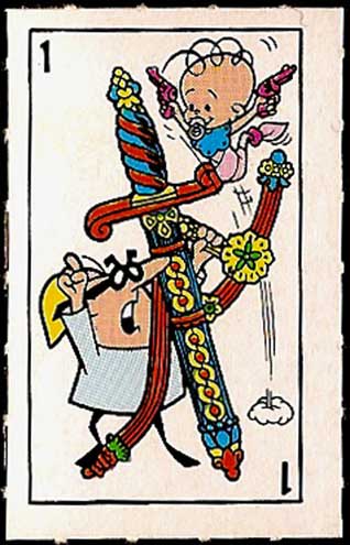 HIJITUS playing cards were published during the mid-1980s as an insert in the children’s comic Anteojito. The characters - Hijitus, Petete, Anteojito - were the creation of Manuel Garcia Ferré, who owned the comic. Hijitus had also featured in a TV programme which was a favourite amongst young Argentinean viewers in 1969/70. See also: Mundialito ’78 →