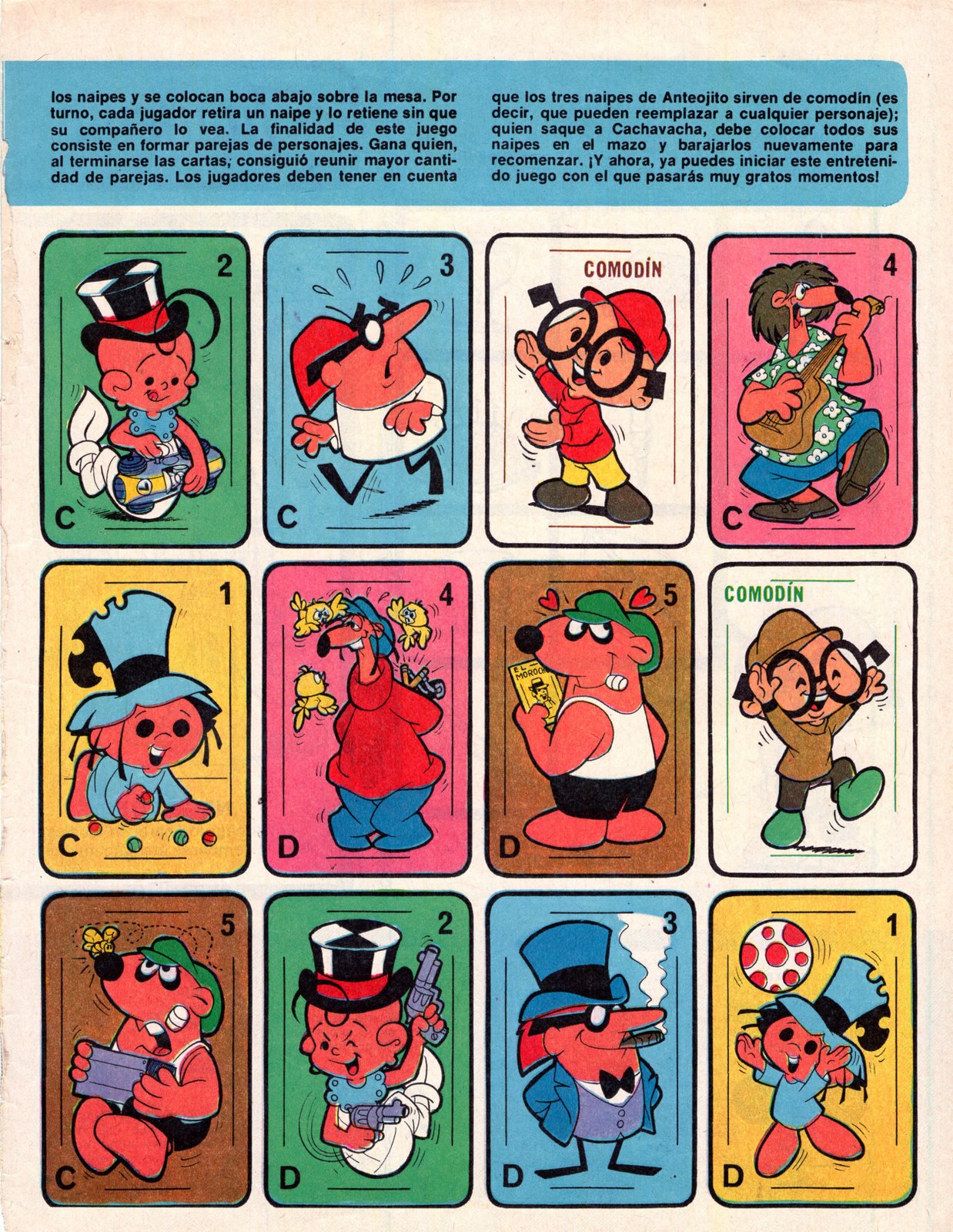 A second set of Anteojito Hijitus playing cards was published as an insert inside the comic, to be pasted onto card and cut out. These can be downloaded here: sheet 1 - sheet 2. |