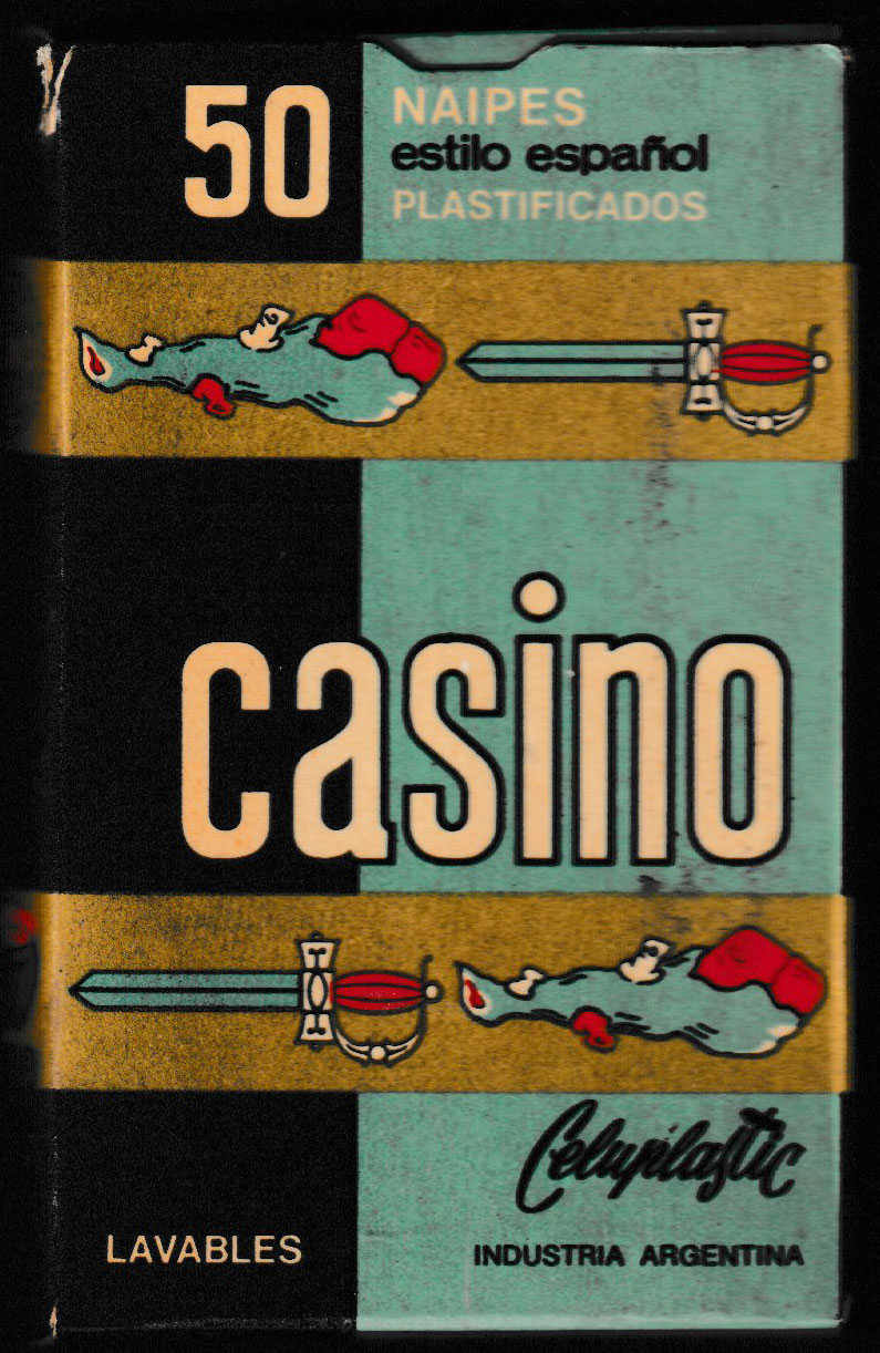 Above: cards from "Naipes Casino Celuplastic" manufactured by Justo Rodero e Hijos, S.A.I.C., Av. Dorrego 611/23, Buenos Aires, c.1975-80. Image courtesy Roddy Somerville.