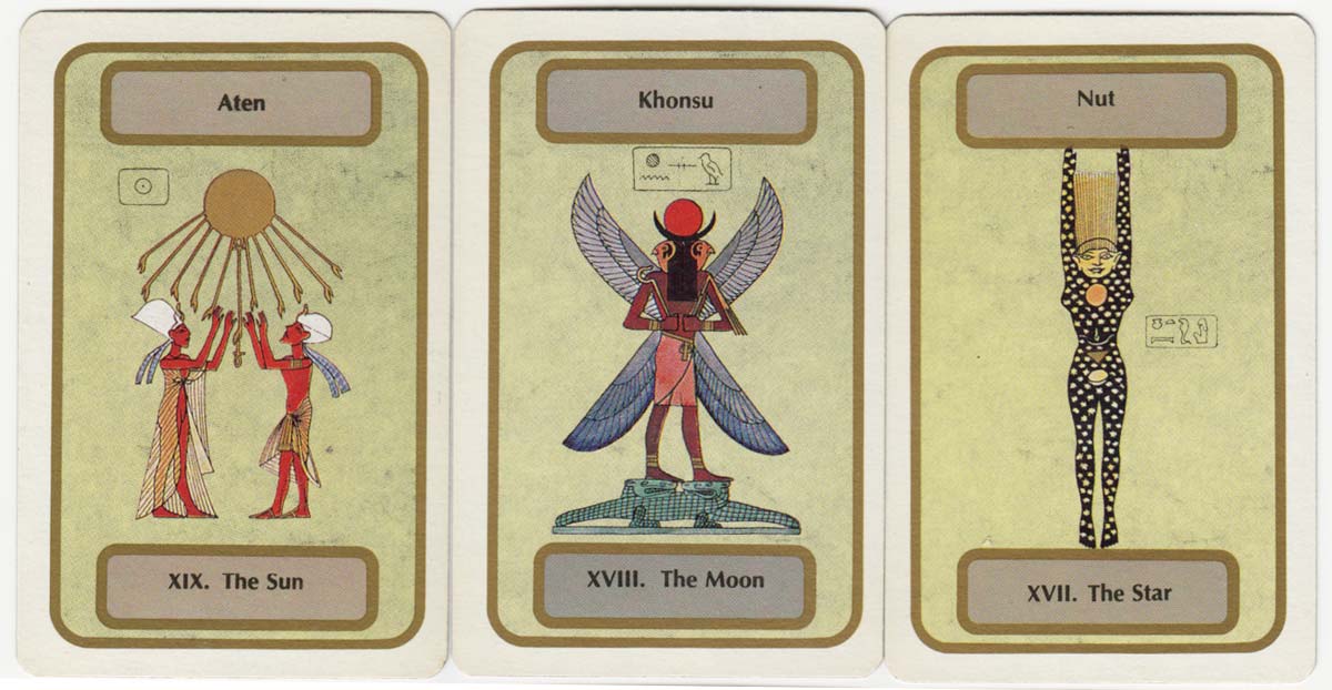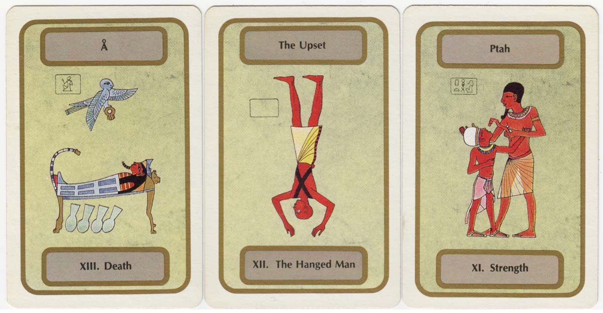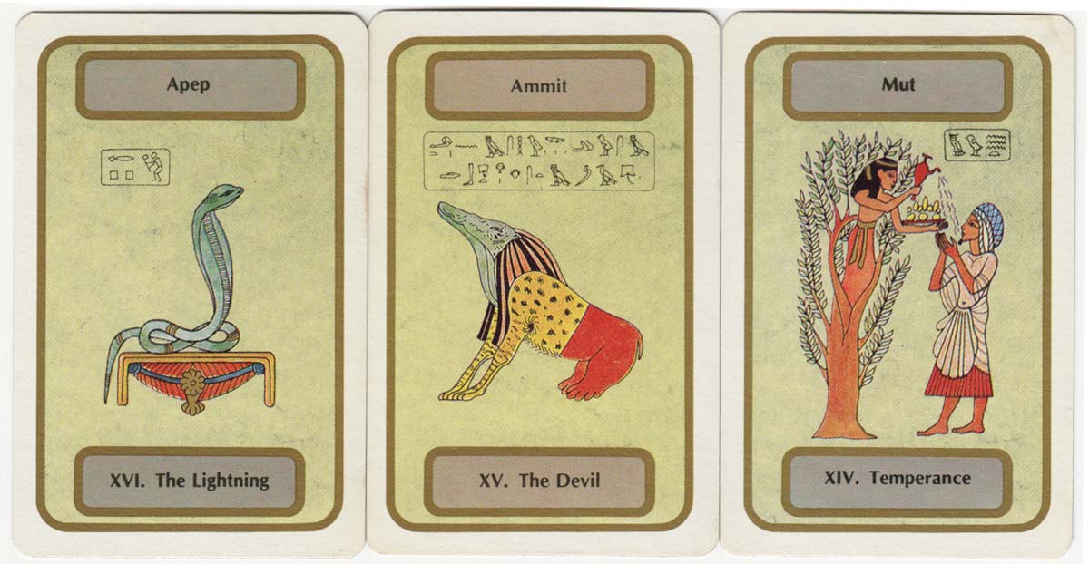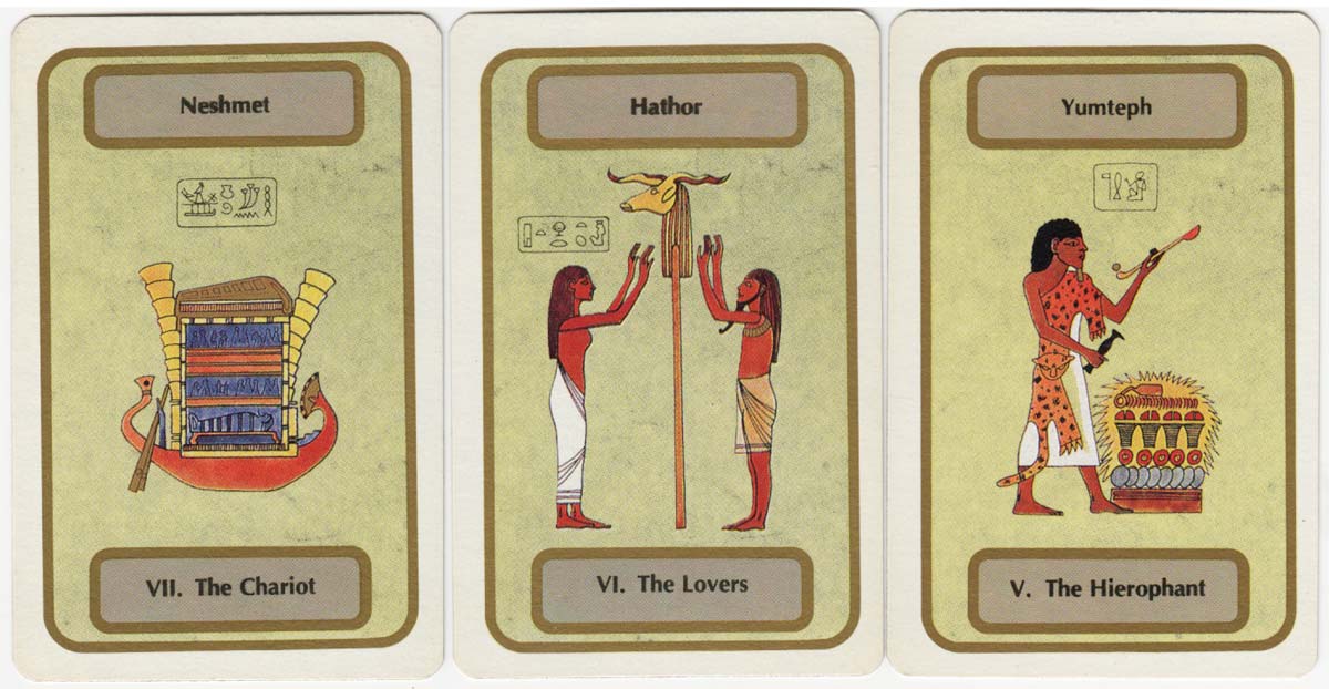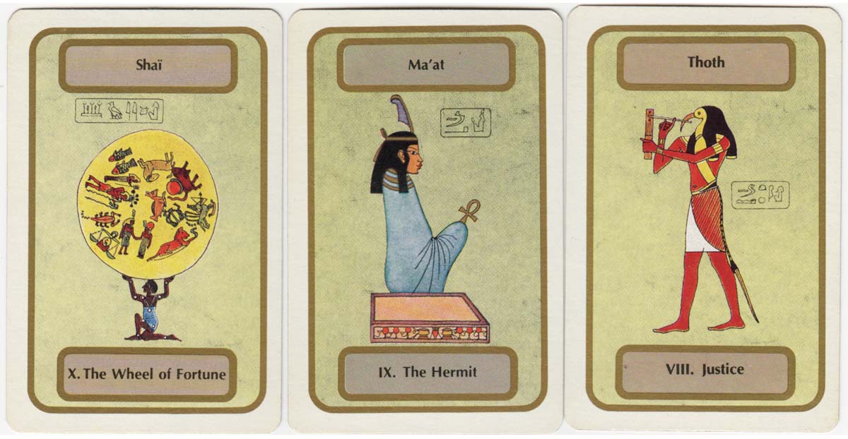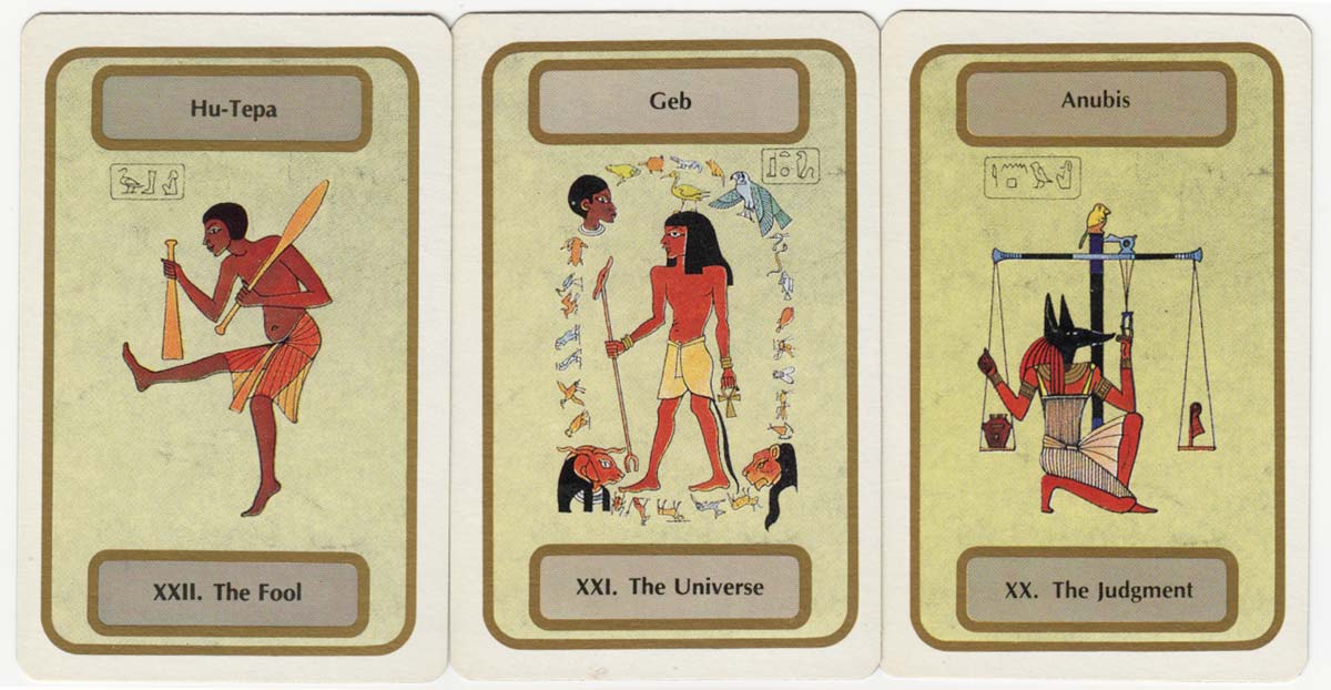 Egyptian Tarot inspired by ancient Egyptian art, mythology, and iconography, published by Naipes La Banca, Buenos Aires, c.1980.