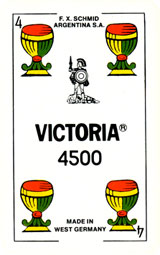 At some point between c1975-1985 the West German playing-card manufacturer F.X.Schmid opened offices in Buenos Aires under the name F.X. Schmid (Argentina) S.A. During this period they acquired the brands "Payador" and "Victoria" which formerly had been owned and produced by Cía Gral Fabril Financiera S.A.