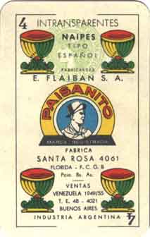 Green domestic production tax stamp on a 'Paisanito' Spanish-suited pack manufactured by E. Flaiban, Buenos Aires, c.1955.