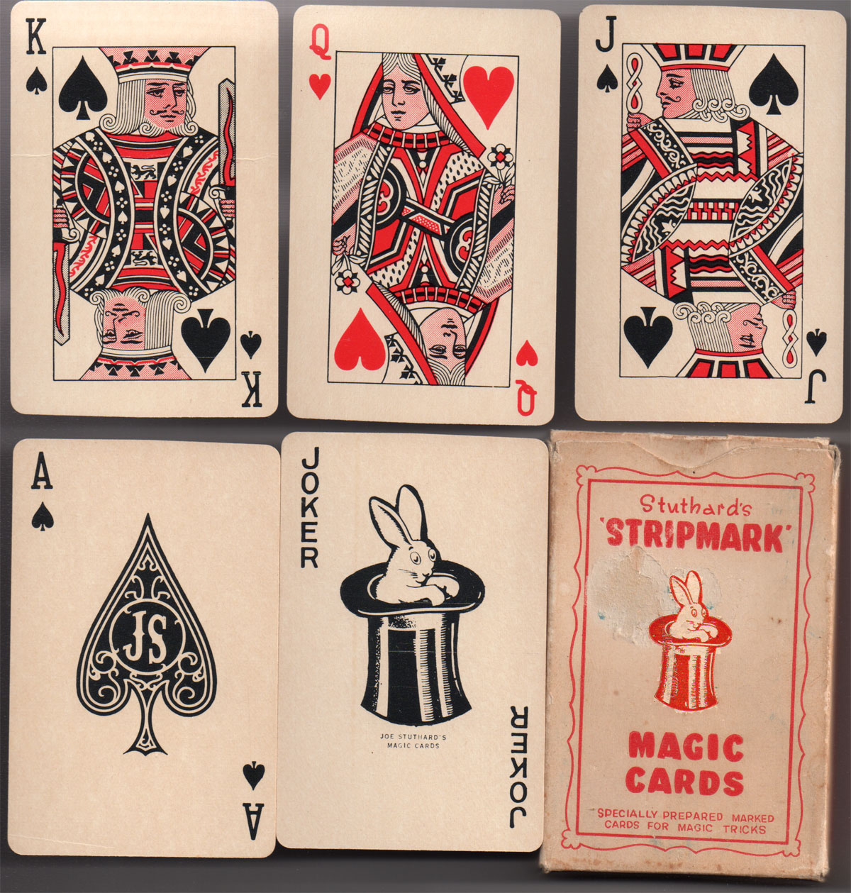 Above: Stuthard’s “Stripmark” Magic playing cards, Hudson Industries Pty Ltd c.1950 or 1960. There is also a Stuthard Svengali deck.