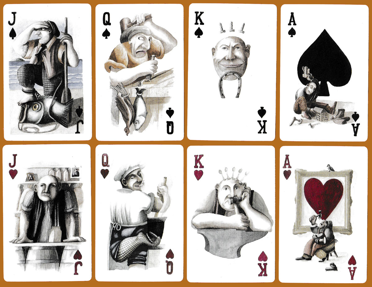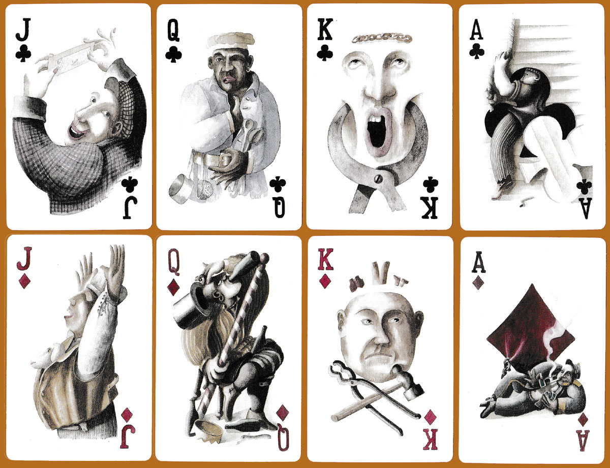 Above: “Pack of Thieves? 52 Port Arthur Lives” playing cards with artwork by Tom Samek published by the Port Arthur Historic Site Management Authority (PAHSMA), Australia, c. 1999.