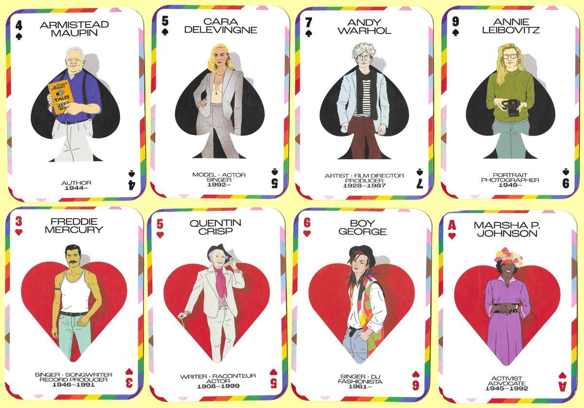 Above: Pride playing cards designed by Phil Constantinesco, published in 2022 by Smith Street Gifts, Melbourne, Australia.
