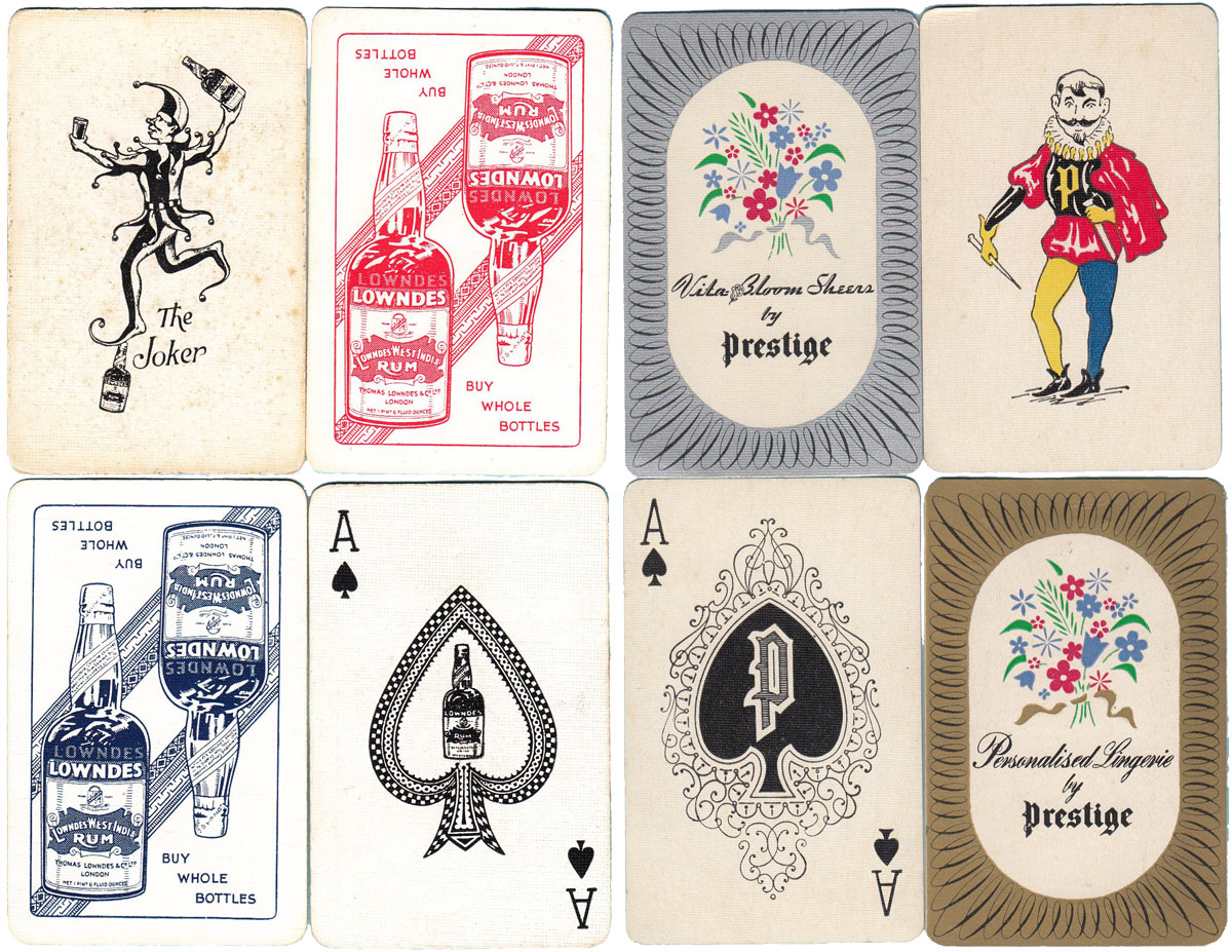 Sands & McDougall produced many beautiful Spade Aces and Jokers for advertising or special brands. This selection is from the collection of Jan Walls.
