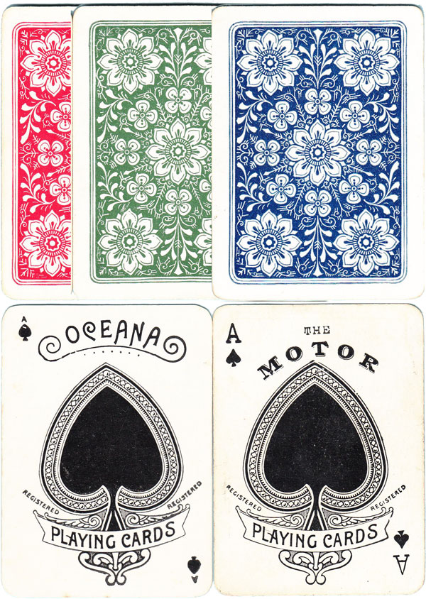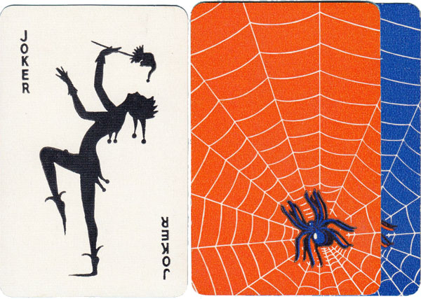 Above: spider web back design. Curiously this design is similar to “Naipes Tela de Araña” by E. Flaiban S.R.L., Buenos Aires, from late 1930s onwards.