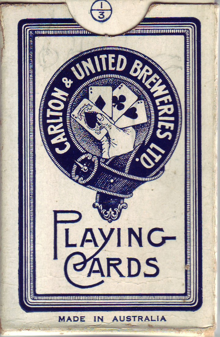 Sands & McDougall made a lot of special advertising decks in the 1920s and 30s, particularly a series of the various beer brands produced by Carlton & United Breweries. They have the brand marked on each of the aces, a special jester joker common to the series, and a copy of the label on the back. Rest of the deck is standard.