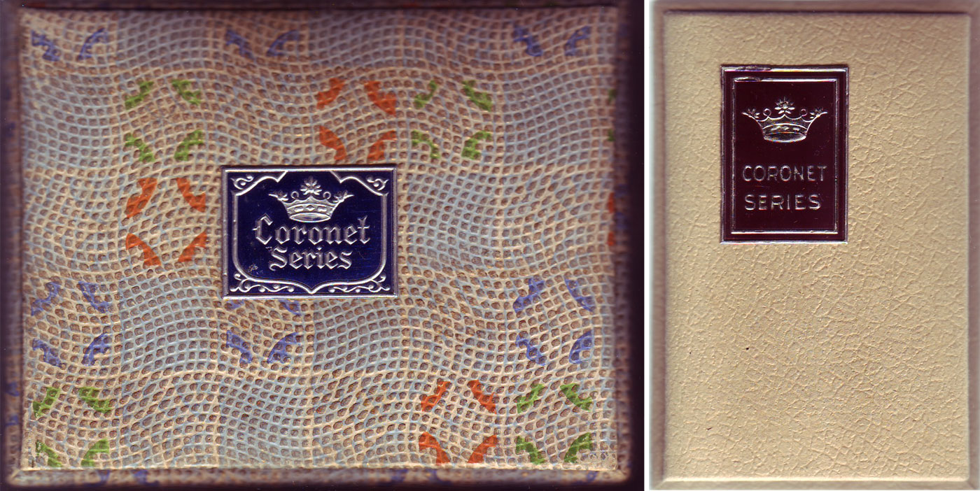 Spicer & Detmold (1922-48) were the successors of William Detmold Ltd. They produced a lot of pictorial back designs, except during the war period. These included series such as Beautiful Australia, Dog Breeds and Popular Film Stars. Most decks with picture backs were printed in 4 colours. In around 1932 the old ace of spades, joker and court card designs were updated, signalling a break from the past. Playing card brands include “Koala”, “Coronet”, gilt edged in four colours and “St George” in two colours. They did produce other decks as well, such as the 500s. In 1948 the company became known as Spicers (Australia).