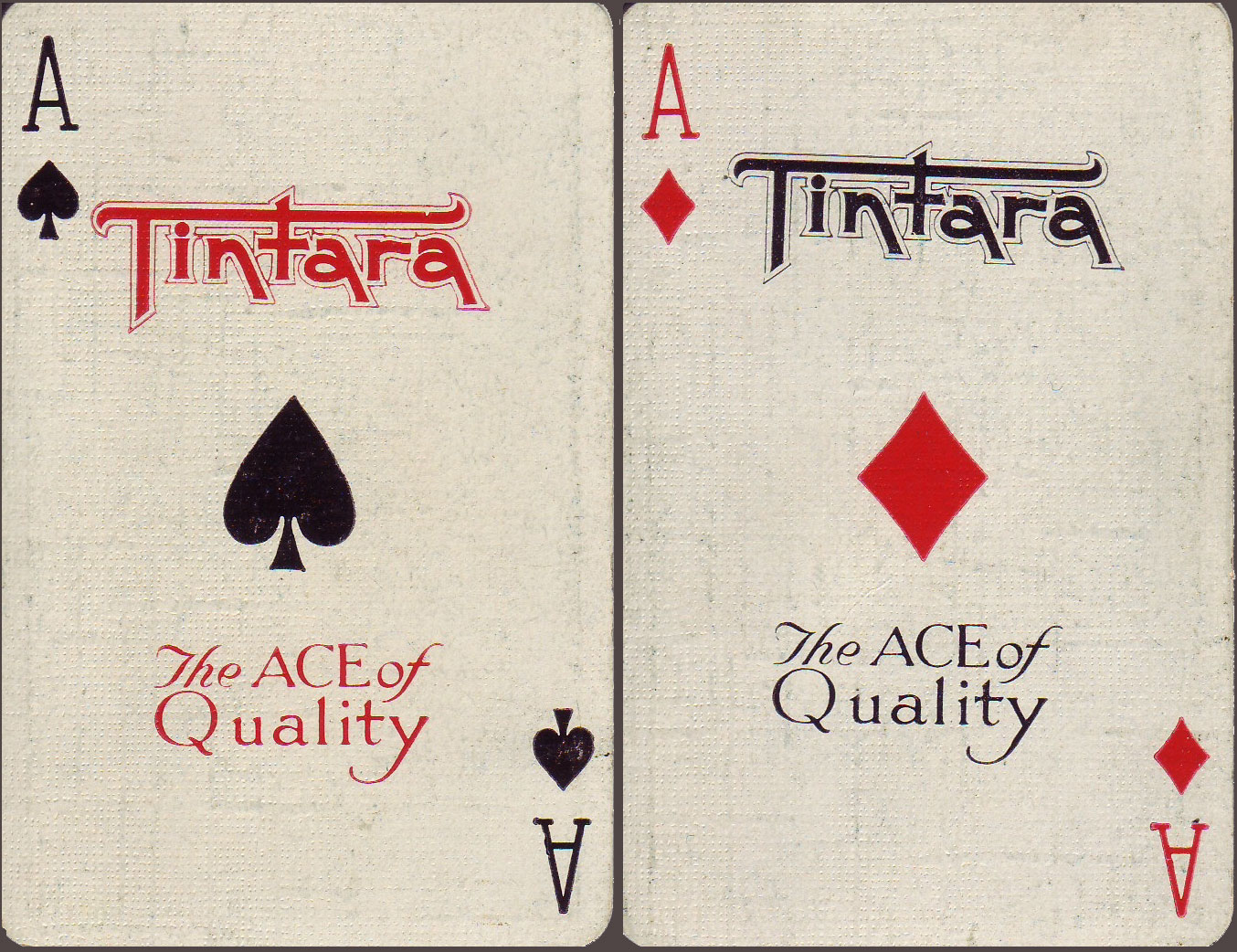 Above: assorted back designs by Spicer & Detmold Ltd. An interesting series they produced in the 1930s was for Tintara. The deck also has special aces. The backs came in at least 2 colour versions each, at least one had 4 different coloured backs. It was a boom time for drinks adverts on cards in the 1930s.