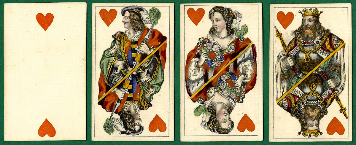 Above: Patience by Joseph Glanz, 1859. 52 cards, 72x43 mm.