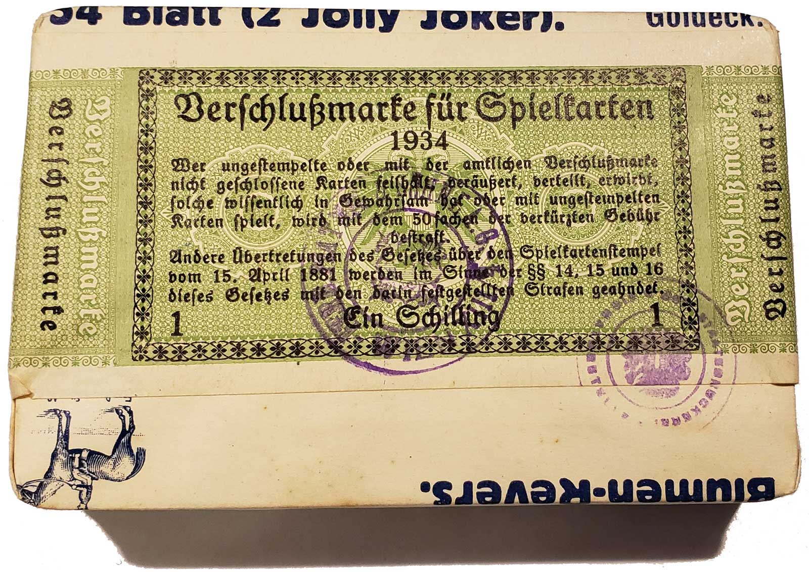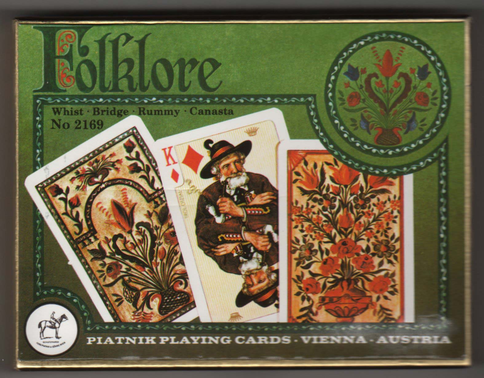 Above: Folklore No.169 by Piatnik, first published in 1934. 52 cards + 2 jokers + extra card in box. Click images to zoom. Images courtesy Carla Parker.