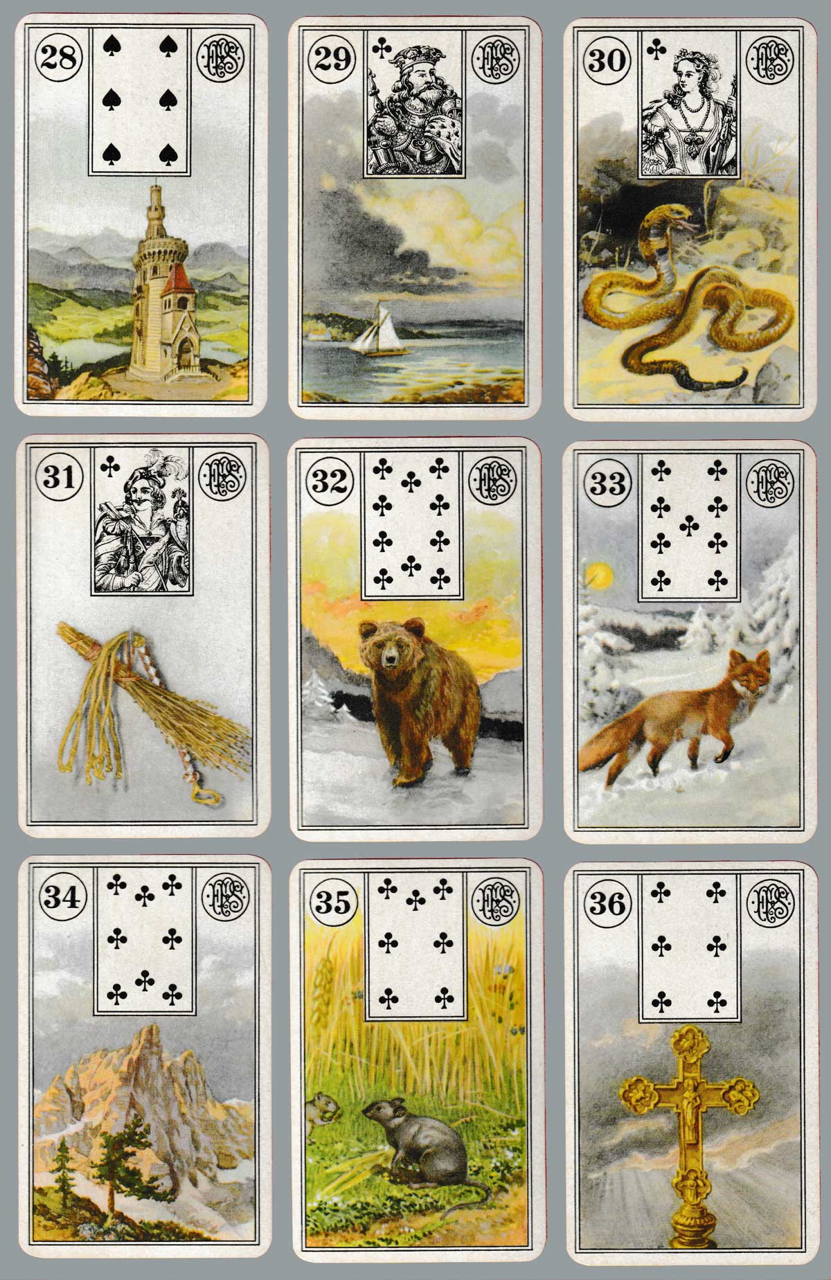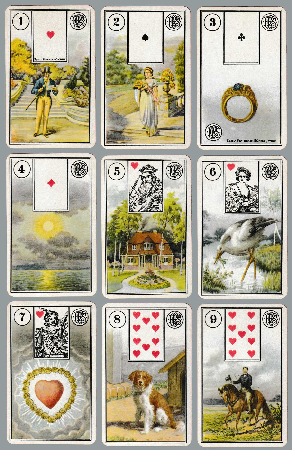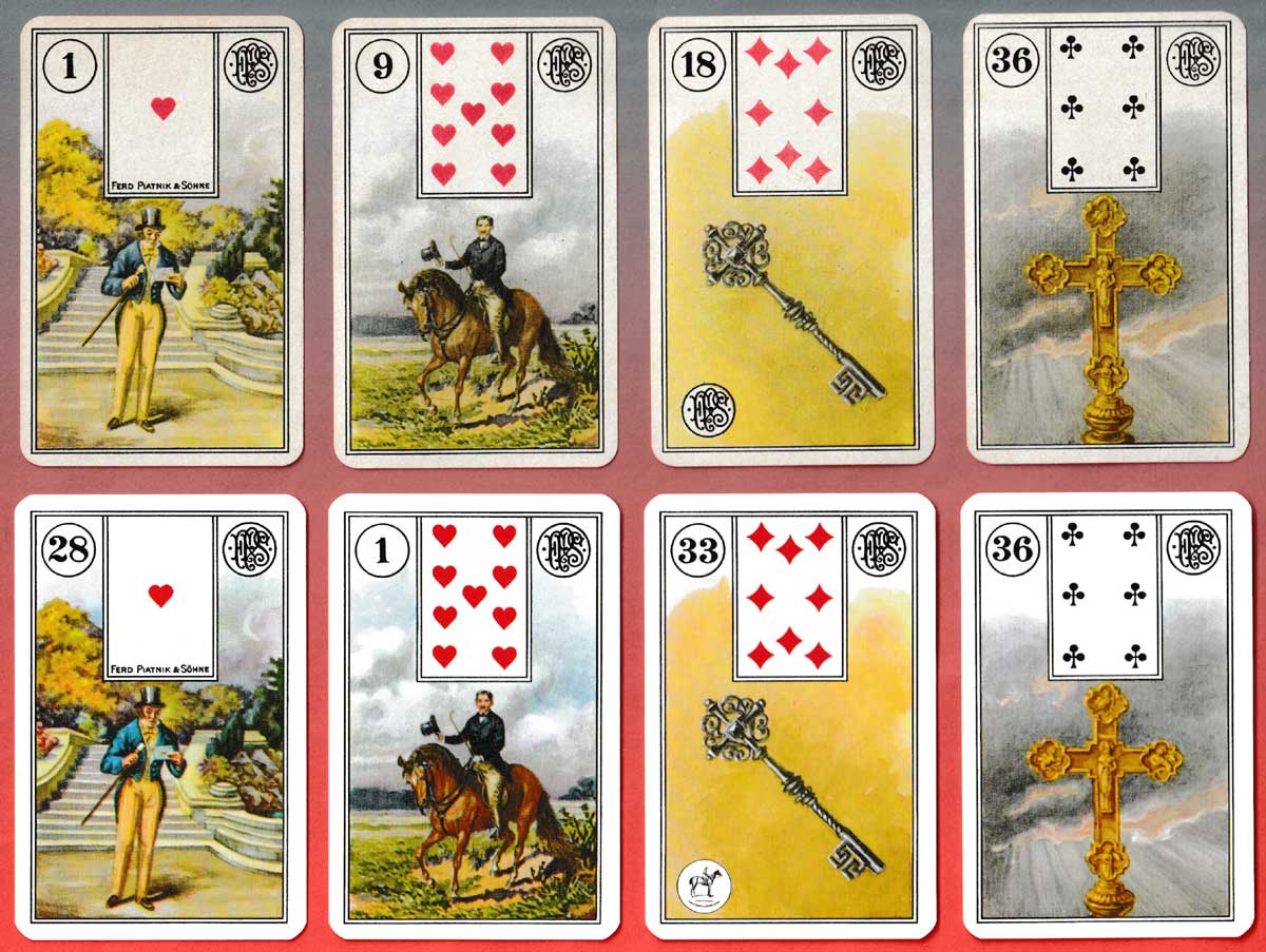 Conventional Lenormand designs on a pack from Piatnik but with unconventional numbering.