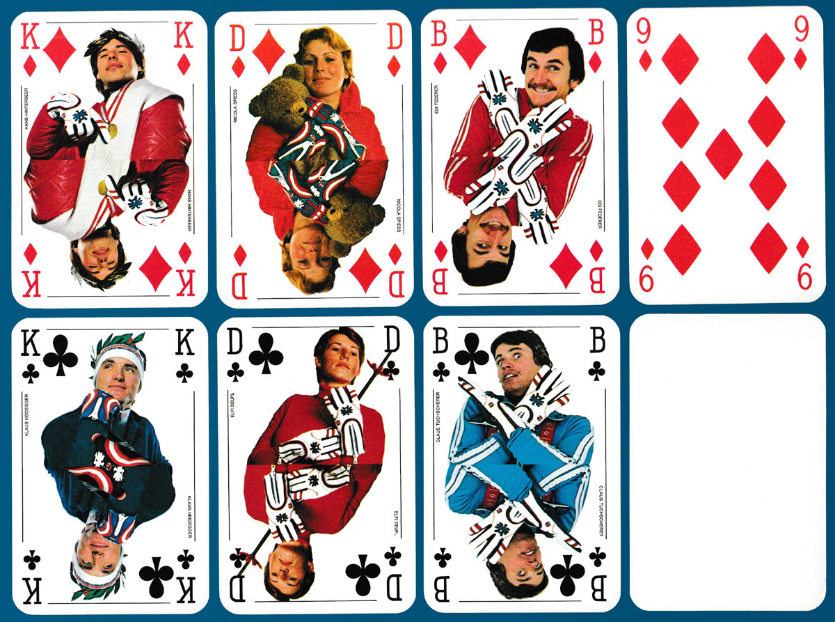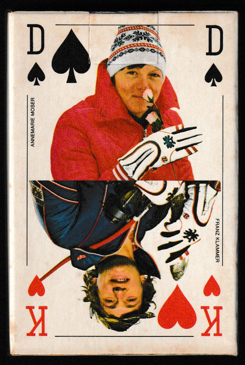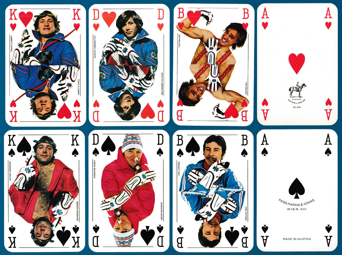 Playing cards depicting famous Austrian skiers of the 1970s.